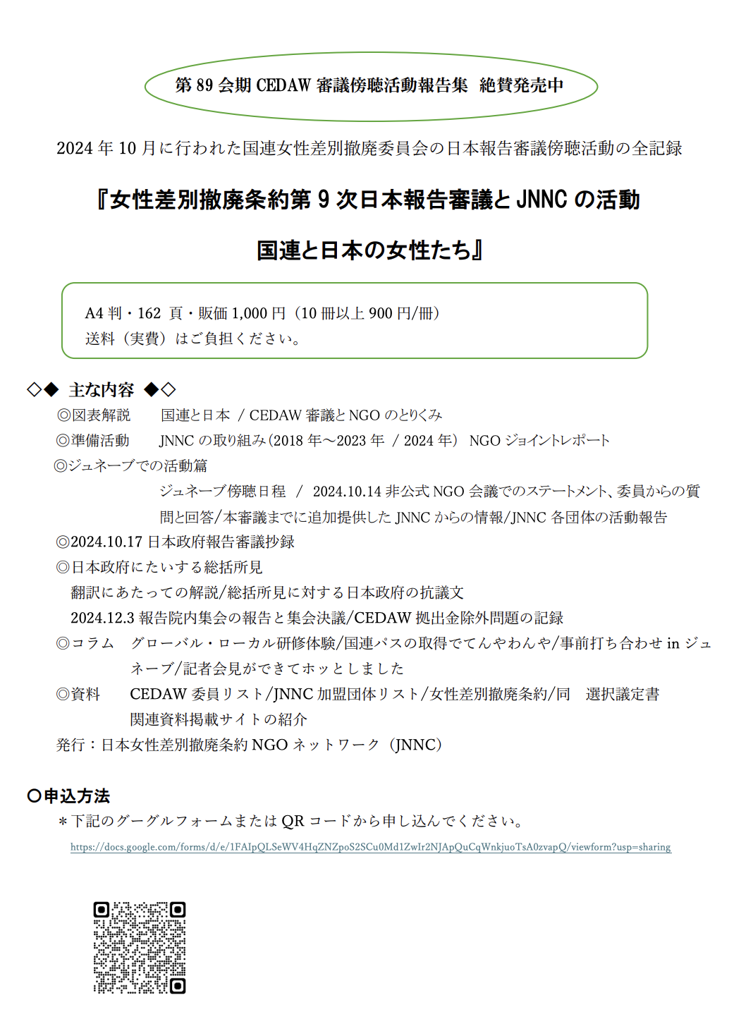 JNNC参加団体の準備活動から、総括所見発表後の日本政府によるCEDAWへの拠出金停止問題の経過まで、収録しています。