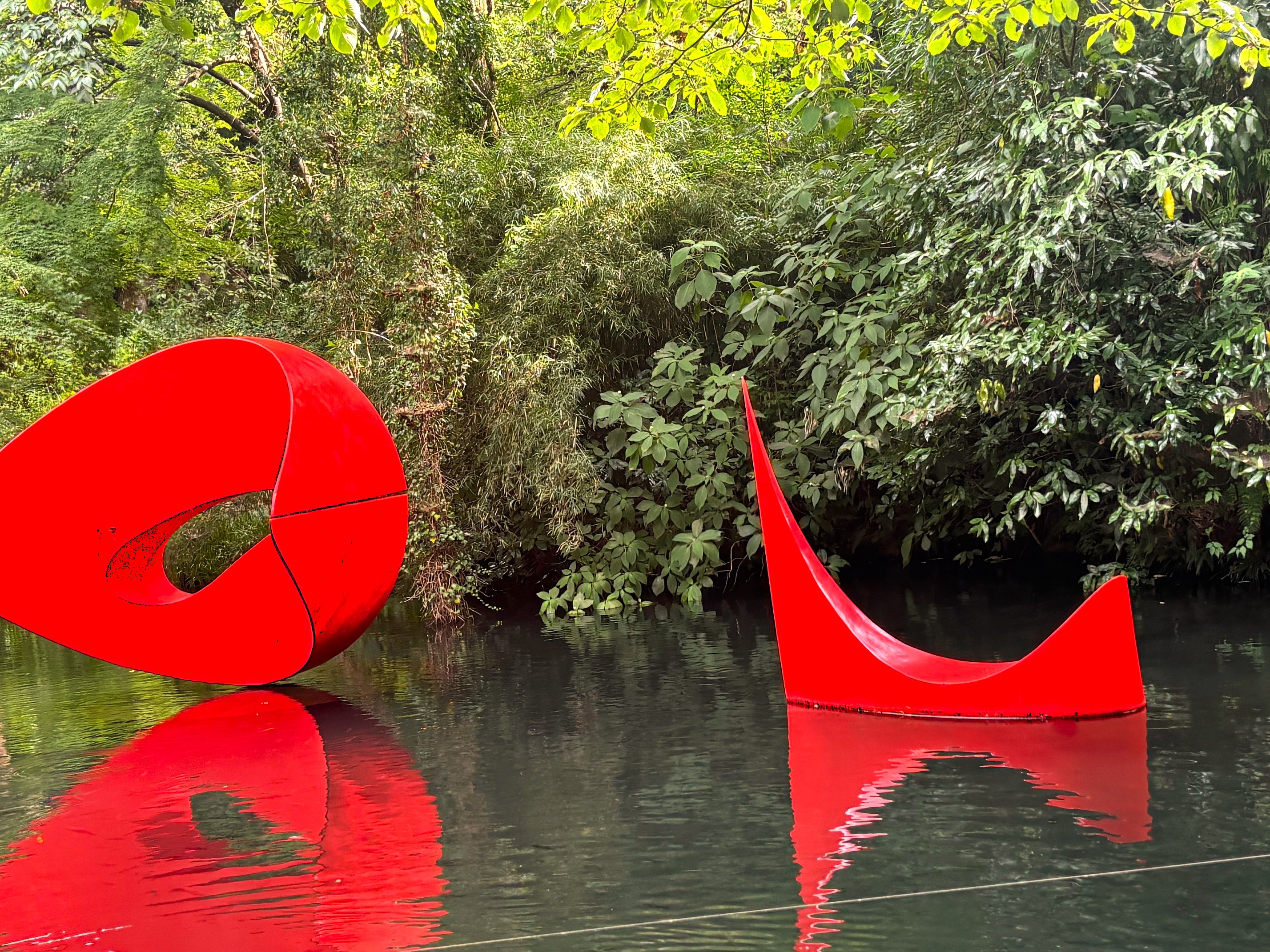 「ミス・ブラック・パワー」(ニキ・ド・サン・ファル)、「女」(朝倉響子)、「浮かぶ彫刻3」(マルタ・パン)などの作品が、森や池を背景に自然の中に配置されている。奥の「ピカソ館」には、パブロ・ピカソの陶芸や絵画、彫刻など多様な技法のオブジェが公開されていた。