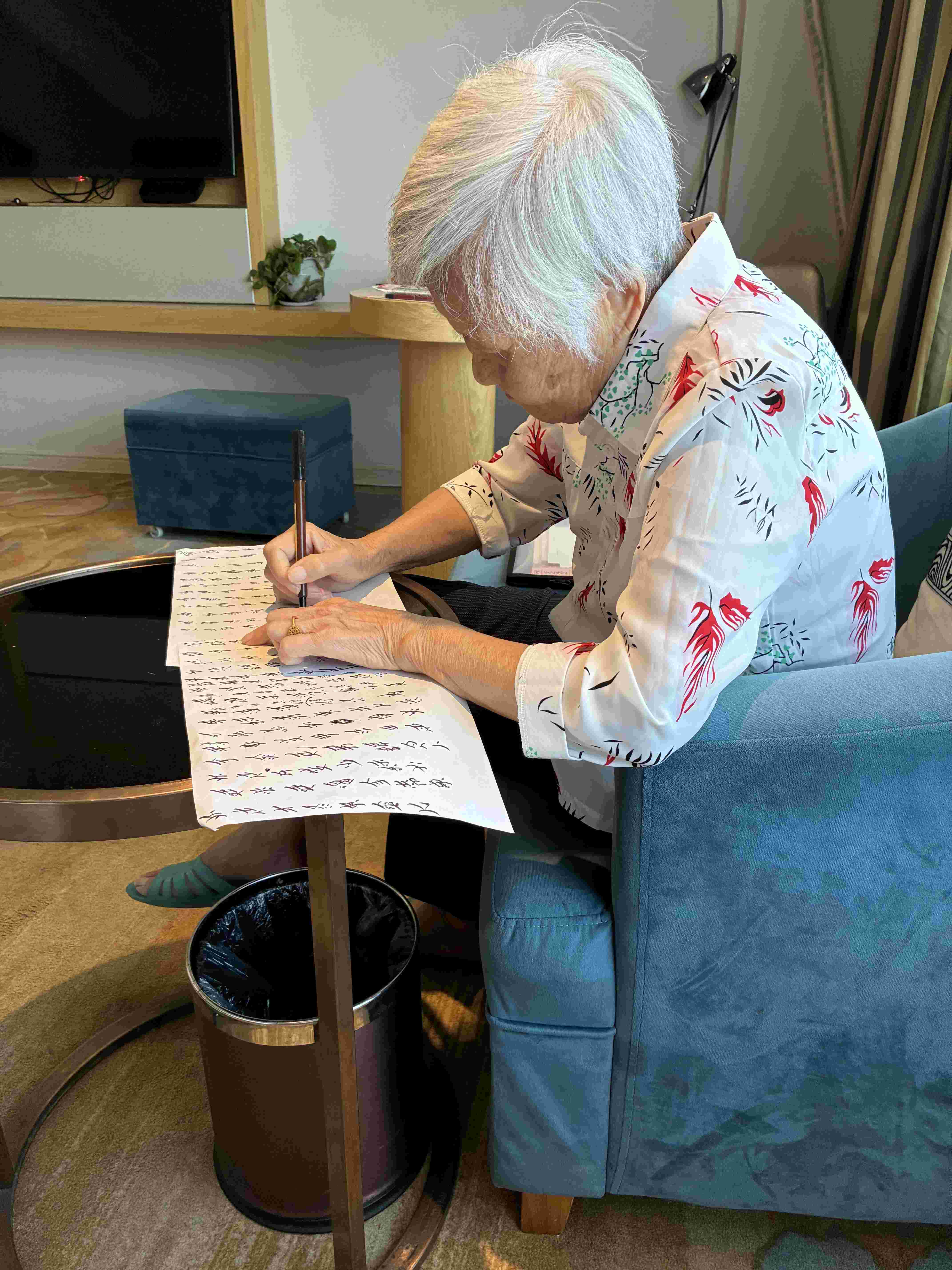 何さんが字を書いているところ