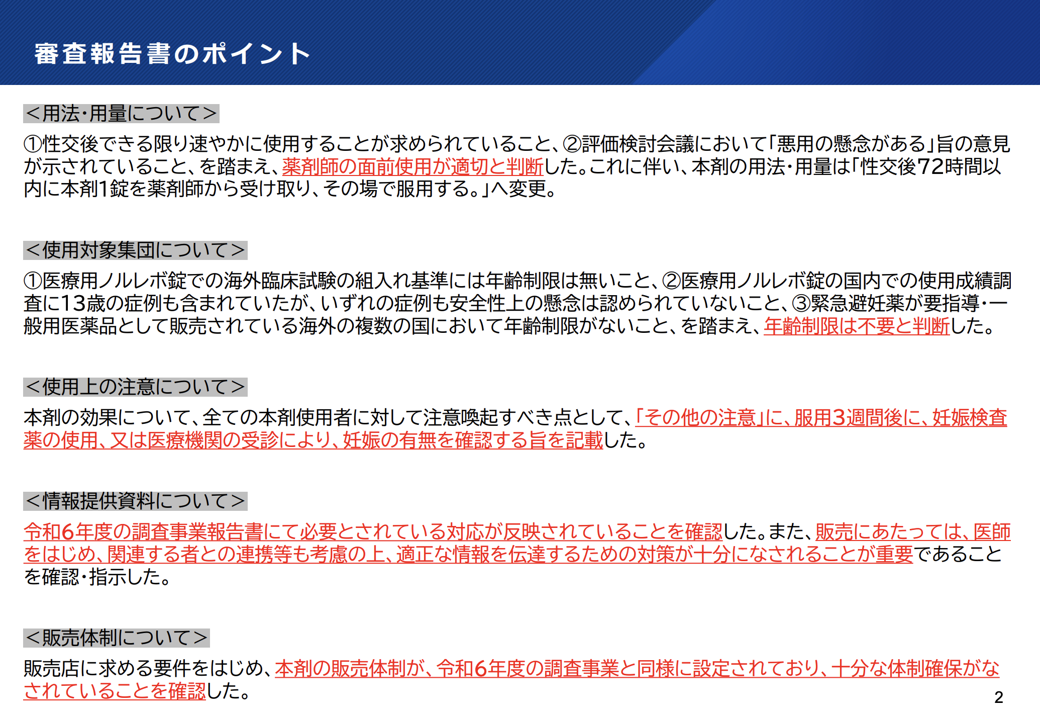 緊急避妊薬ノルレボのスイッチOTC化を了承