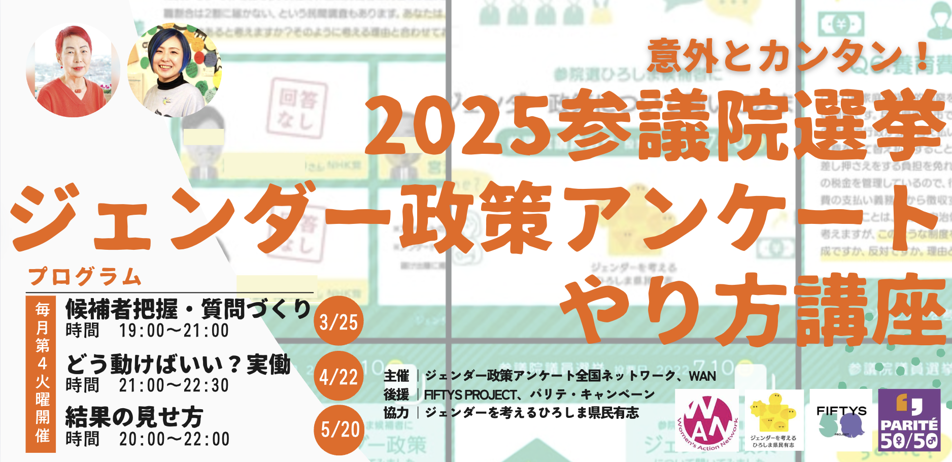 「ジェンダー政策アンケート」のやり方ヒントがぎっしり詰まったページ https://wan.or.jp/article/show/11906
