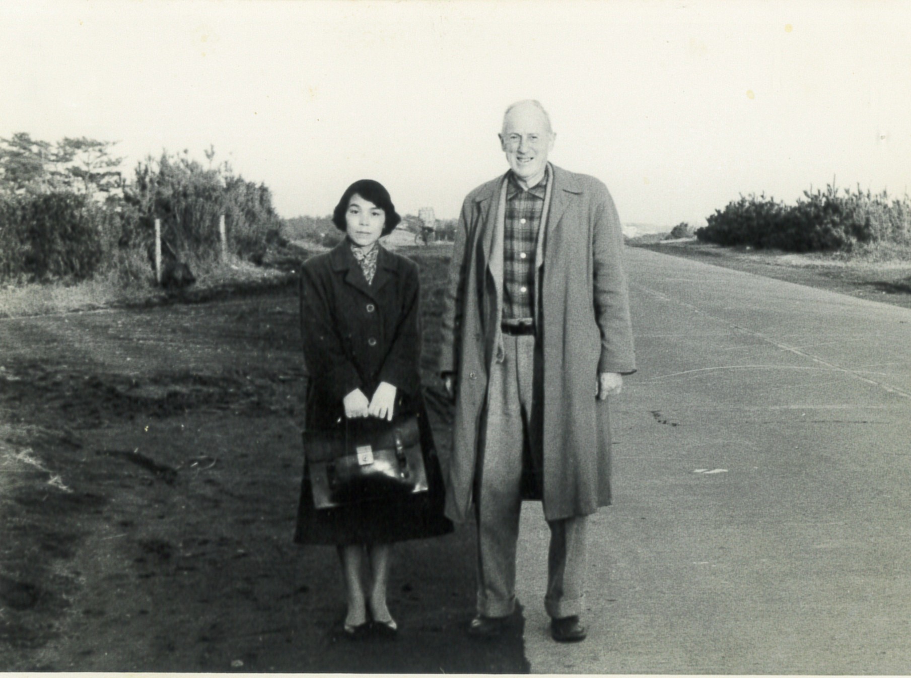母のアルバムに「茅ケ崎中海岸にて」とある2枚の写真のうちの1枚。チェニー先生と母・清子