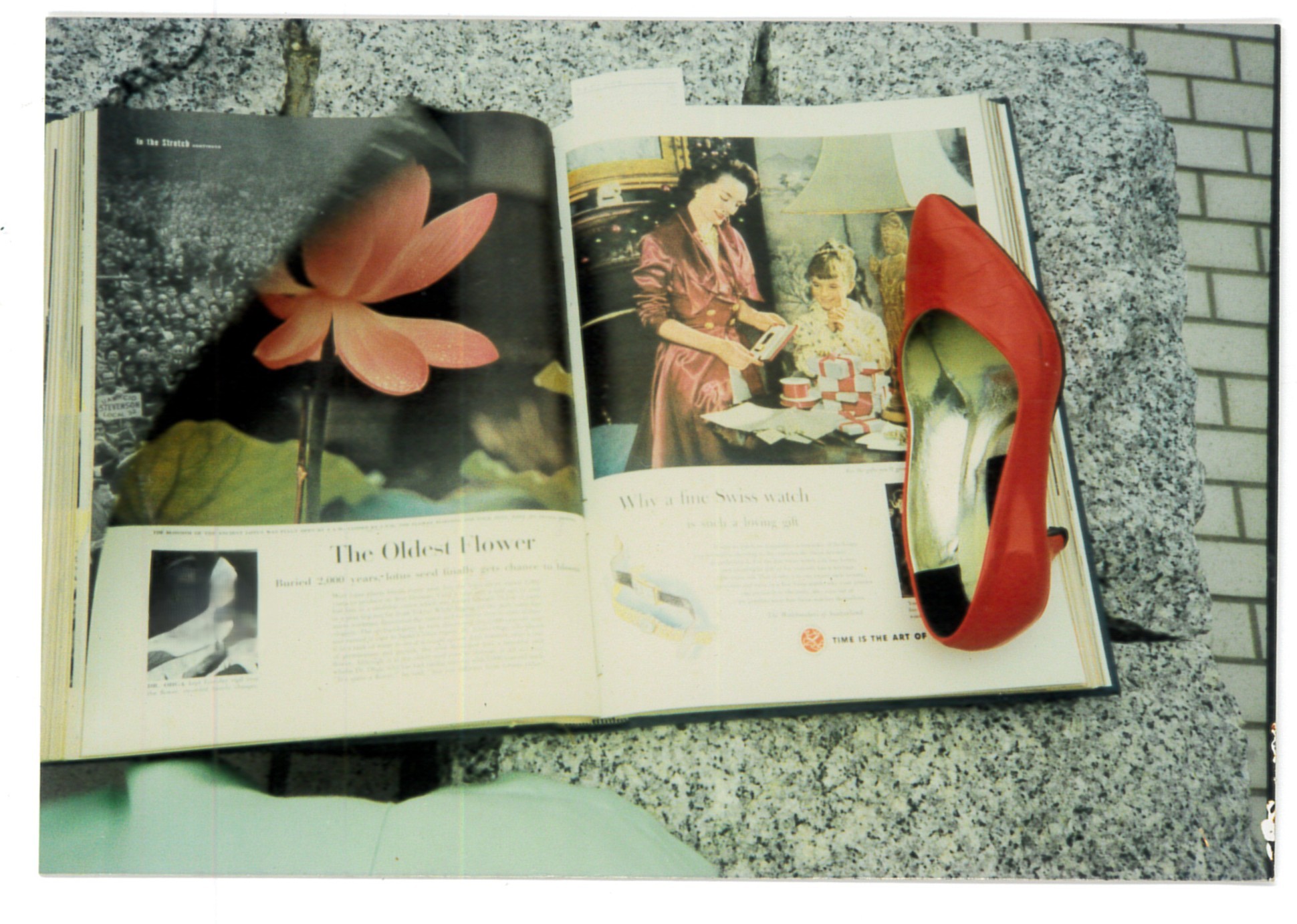 国立国会図書館へも調べ物をしにオートバイでよく出かけた。ライダースーツで図書館に入ろうとしたら、「これこれ、いくつですか?」と呼び止められた。未成年に見えたのだろうか?「25歳です!」とムッとして答えた。アメリカのライフ誌に掲載された記事を探しに行ったのだったが、見つからなかった。ほかにもAさんの書を持って行って、「これはなんと読むのでしょう?どんな意味ですか?」と司書の人に尋ねた。「観無量寿経」という書があって、その意味を知りたいと言ったら「それは仏教の教えで・・・・」と答えてくれたが、私には消化不良だった。ライフ誌については、のちに母校の大学の図書館で聞いてみたら、当たり前にあった。嬉しくて、図書館の外光が入るところで、大きさがわかるように自分の赤いパンプスと一緒にカメラに収めて嬉しがっていた。