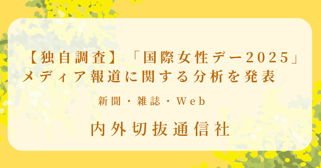 クリッピング、報道分析サービスを提供する株式会社内外切抜通信社(東京都新宿区、代表取締役:近藤義昭)は、2025年「国際女性デー」(3月8日)に関する新聞91紙、雑誌1,064誌、Webニュース4,437サイトの報道を調査し、分析しました。
