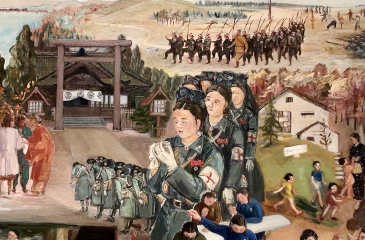 女流美術家奉公隊による《大東亜戦皇国婦女皆働之図》秋冬の部(部分)