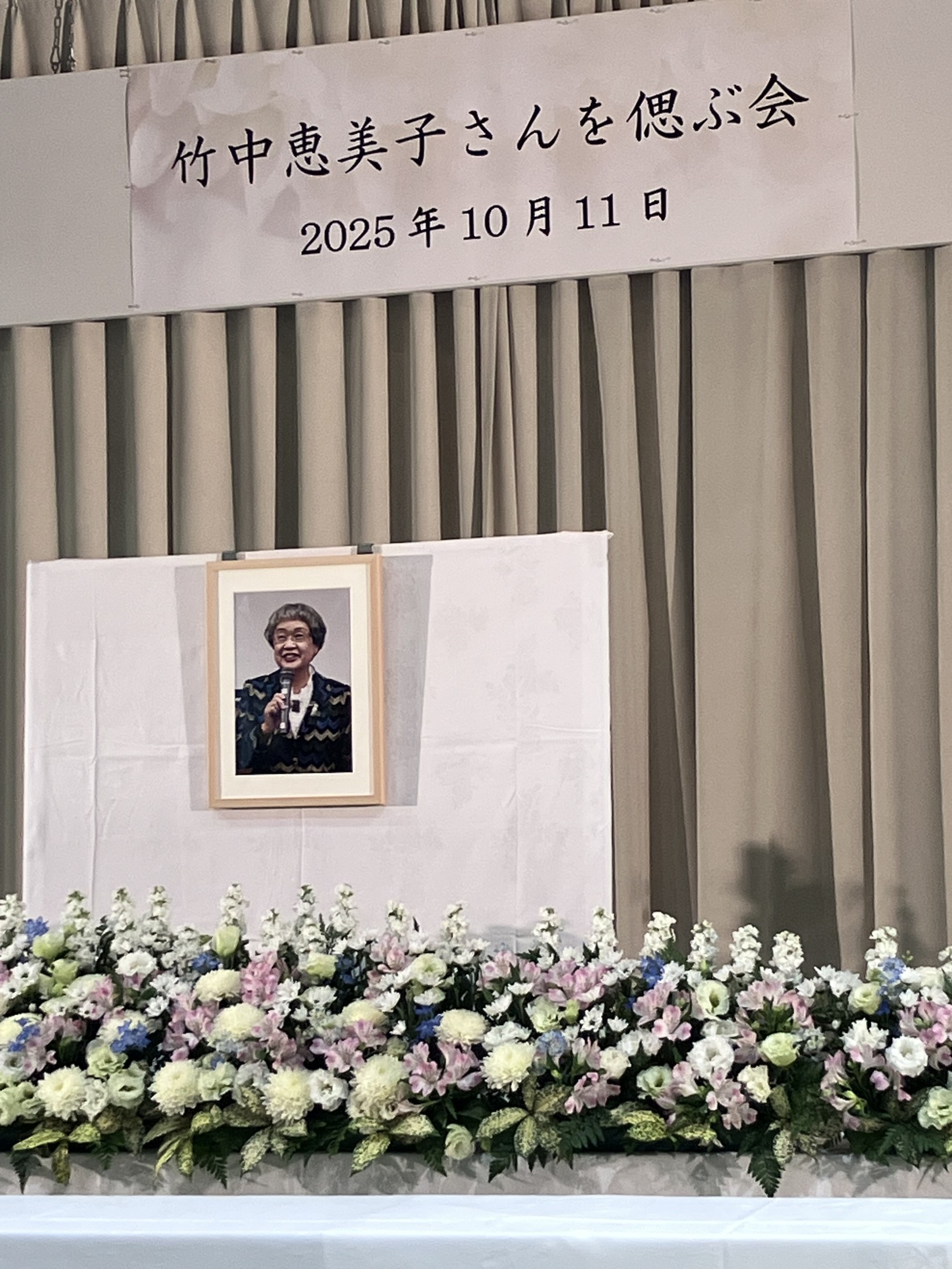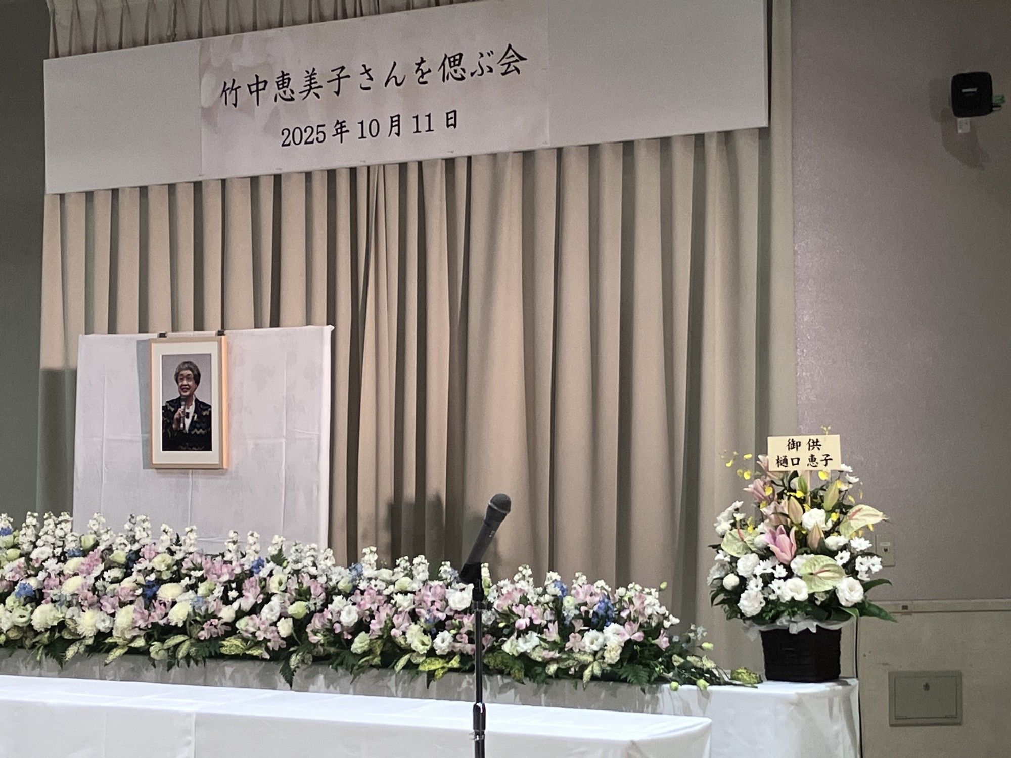 会には、さまざまな形で竹中さんと関わりを持つ方々が80名以上集い、7月1日にご逝去された竹中さんを悼みました。また、当日参加できない方からも多くのメッセージやお花代のご寄付をいただきました。