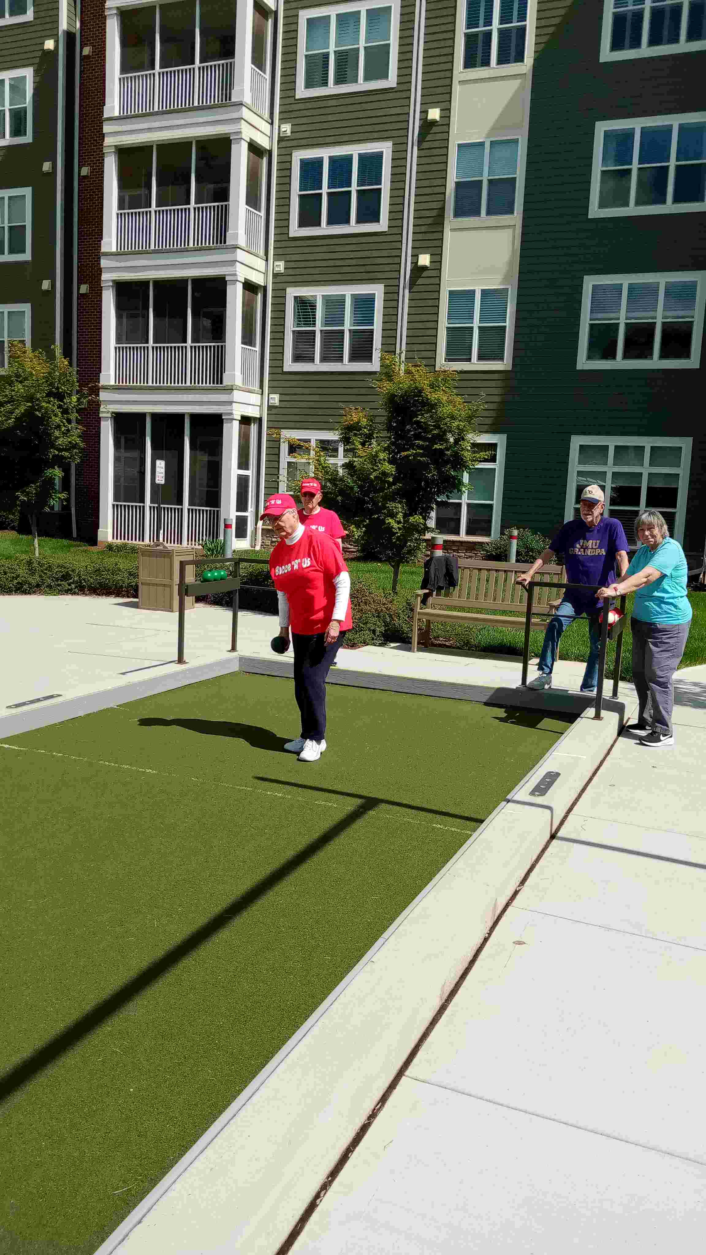 ボッチャは、アシュビィ・ポンズでとても人気があるスポーツです。400人以上の住民が春と秋のシーズンに40チームに分かれてプレイしています。チームの名前は「ホーリー・ローラーズ」「ローン・レンジャーズ」「ローリング・ストーンズ」などで、メンバーはチームの名前が入ったチームTシャツを着用します。試合中は、チーム全員がコートの脇に座ってプレイ中の仲間を応援します。毎シーズンの終わりには順位決定戦やチャンピオン決定戦もあり、結構盛り上がります。