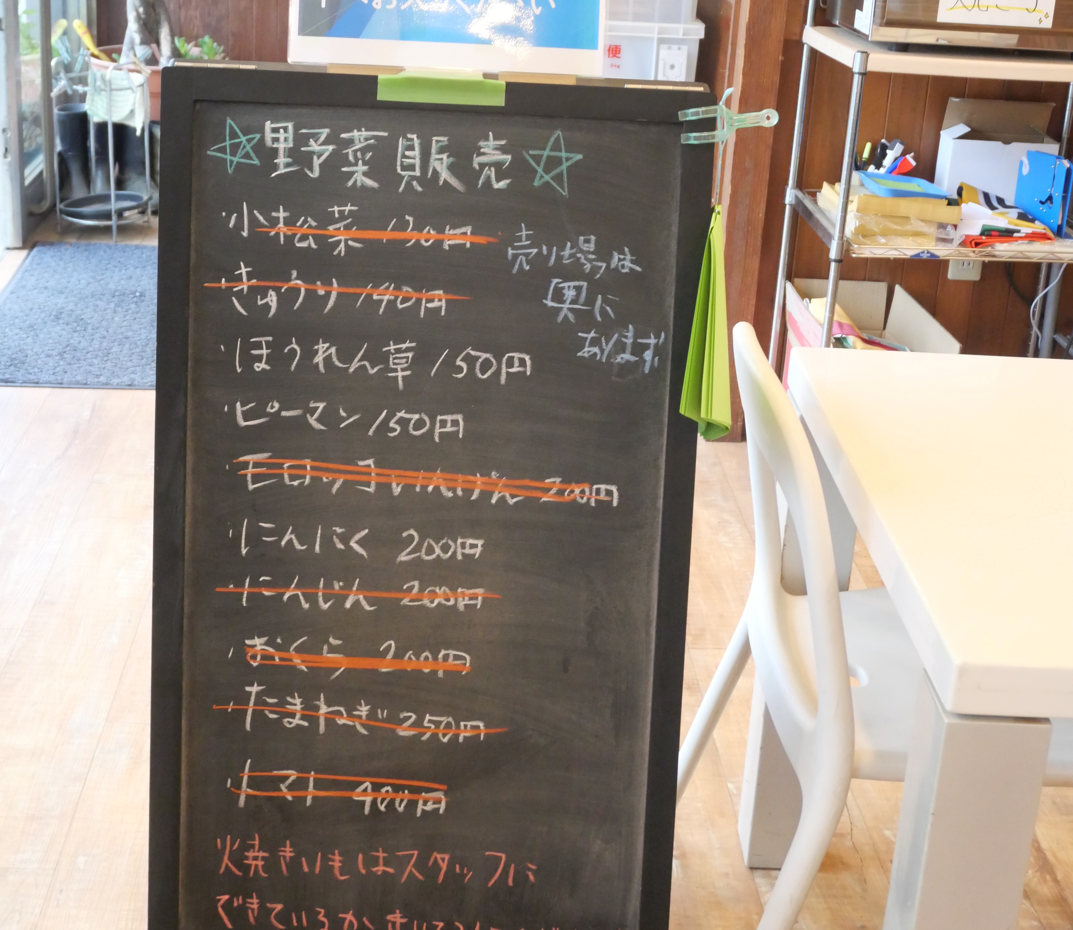 野菜販売の案内が掲示される
