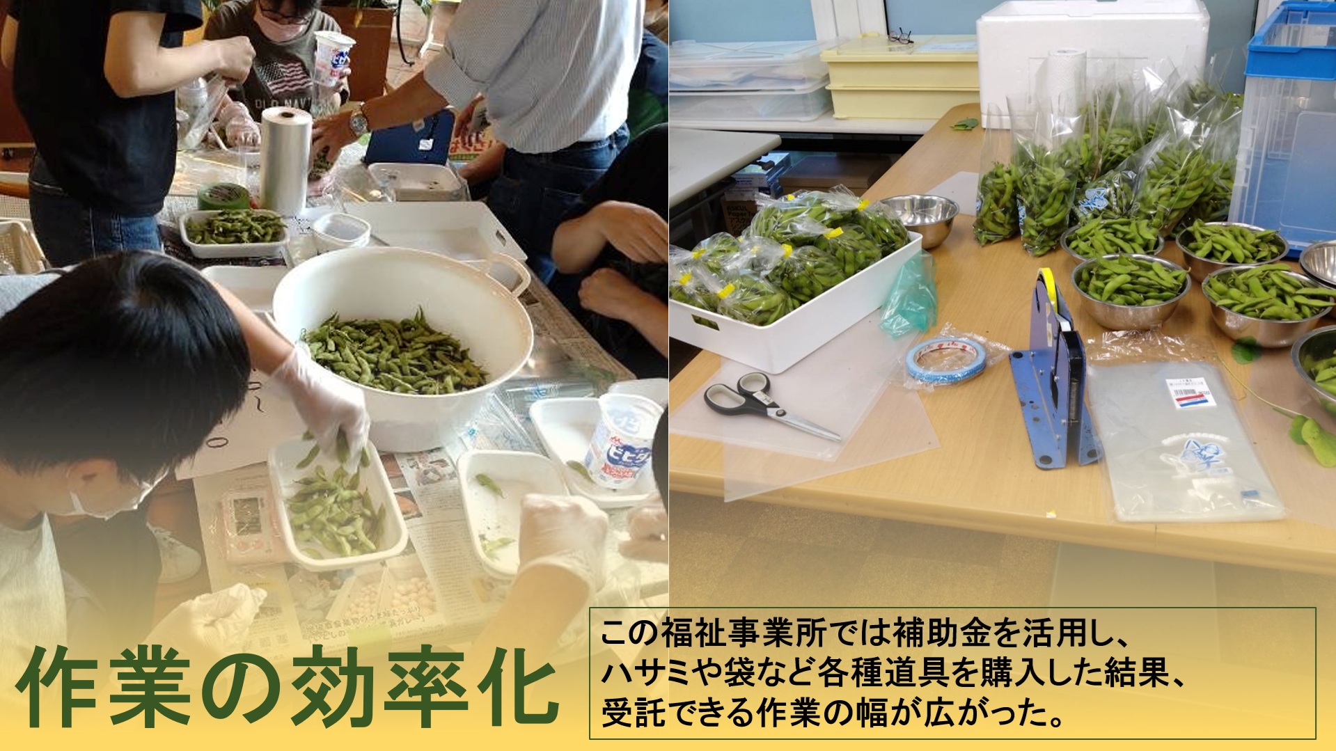★補助金で福祉事務所にハサミや袋詰めなどの道具がそろった