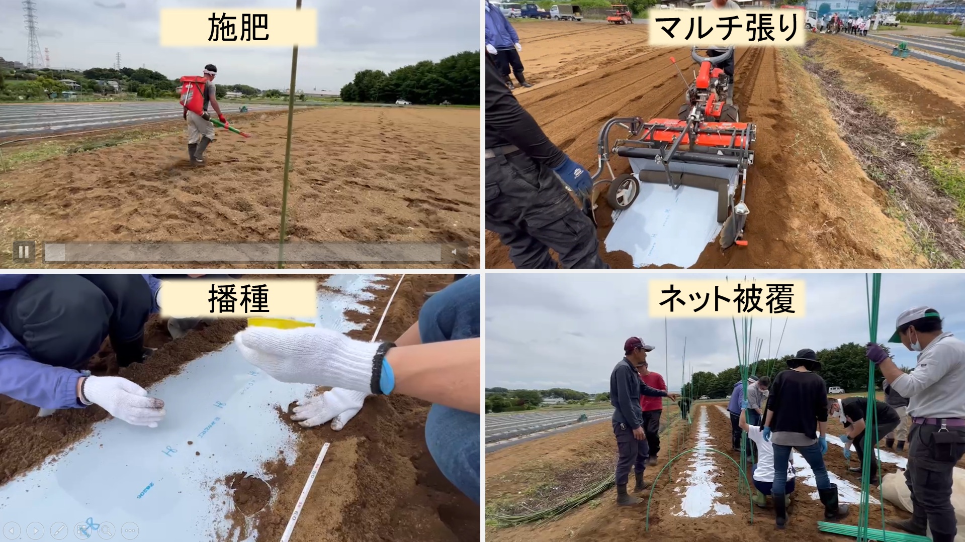 「そもそも私たちも農業の経験がない。農家さんもどうやったら仕事をしてもらえるかわからない。最初は道具の名前もわからない。普通の畑の作業がわからない。同じ深さに苗を植えないと日当たりが変わる。そうする生育にも収穫状況も変わってしまう。同じだけの深さの穴を開けるにはどうするか。棒に印をつけ、その分だけ穴を開けていこうかとか、種何粒という時にその場で数えるのは大変だからヤクルトの空容器に種を数だけ入れて蒔くとうまくできるんじゃないかとか。そういう作業を作っていった。試行錯誤。それで枝豆をプロの農家さんに植えてもらい、その横で映像を撮り、ここは作業の工夫ができそうとか、この道具を使ったらどうかとかいうのを一緒に現場で行った。そこから実際現場でやってみましょうと形にしたんです」(野々垣さん)