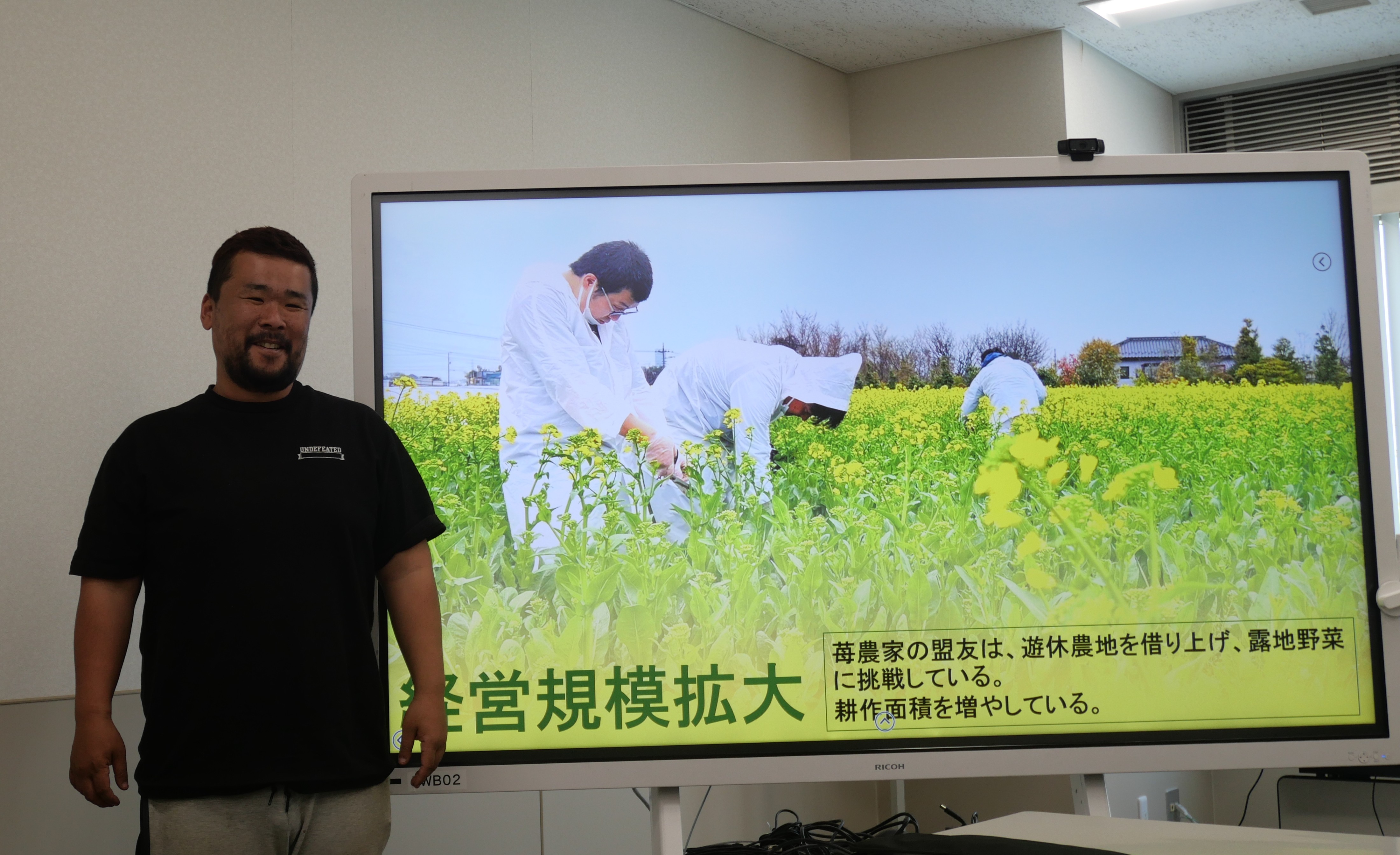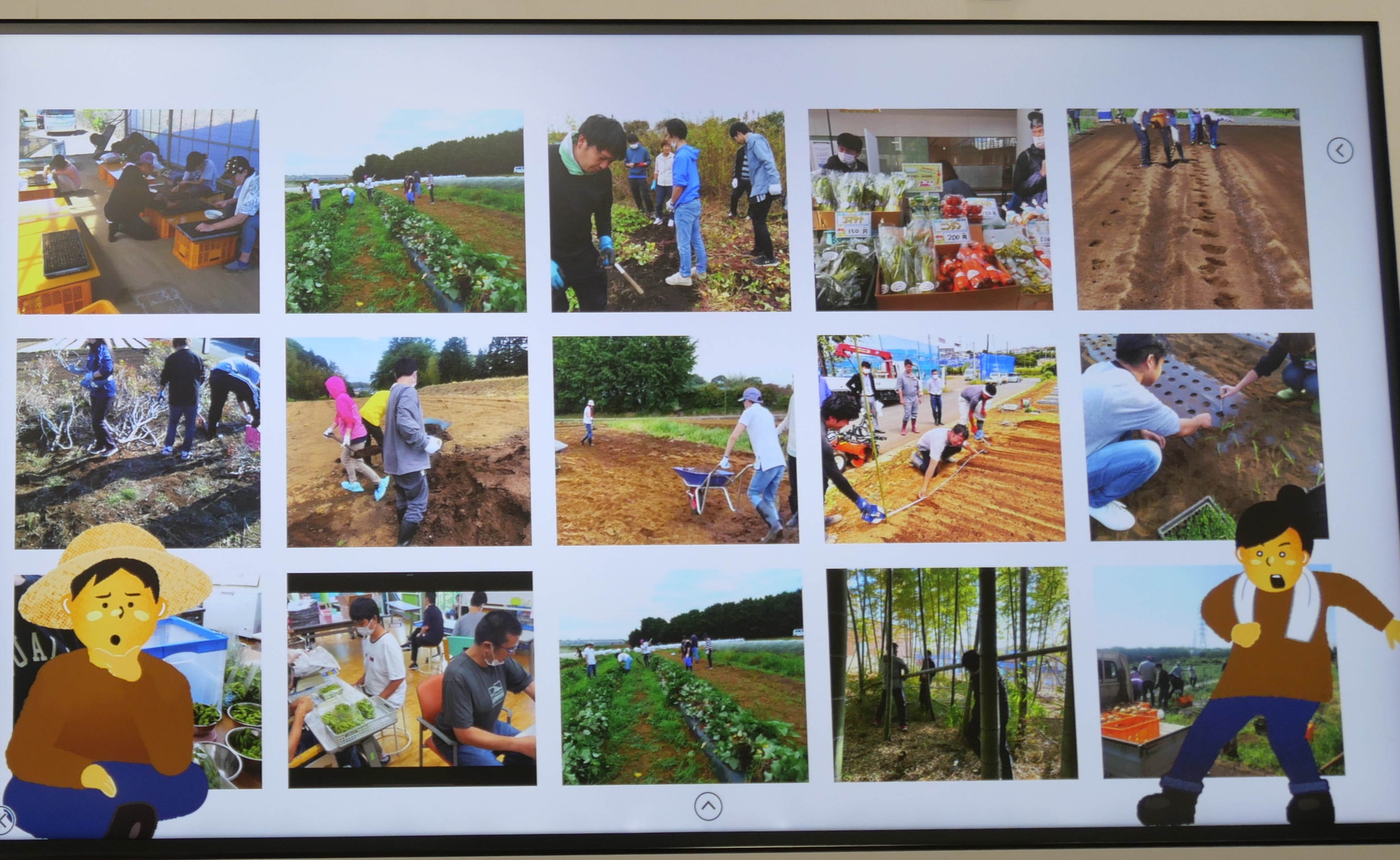 発表で上映されたパワーポイントの1枚。農家の角田泰信さんが手掛けた。
