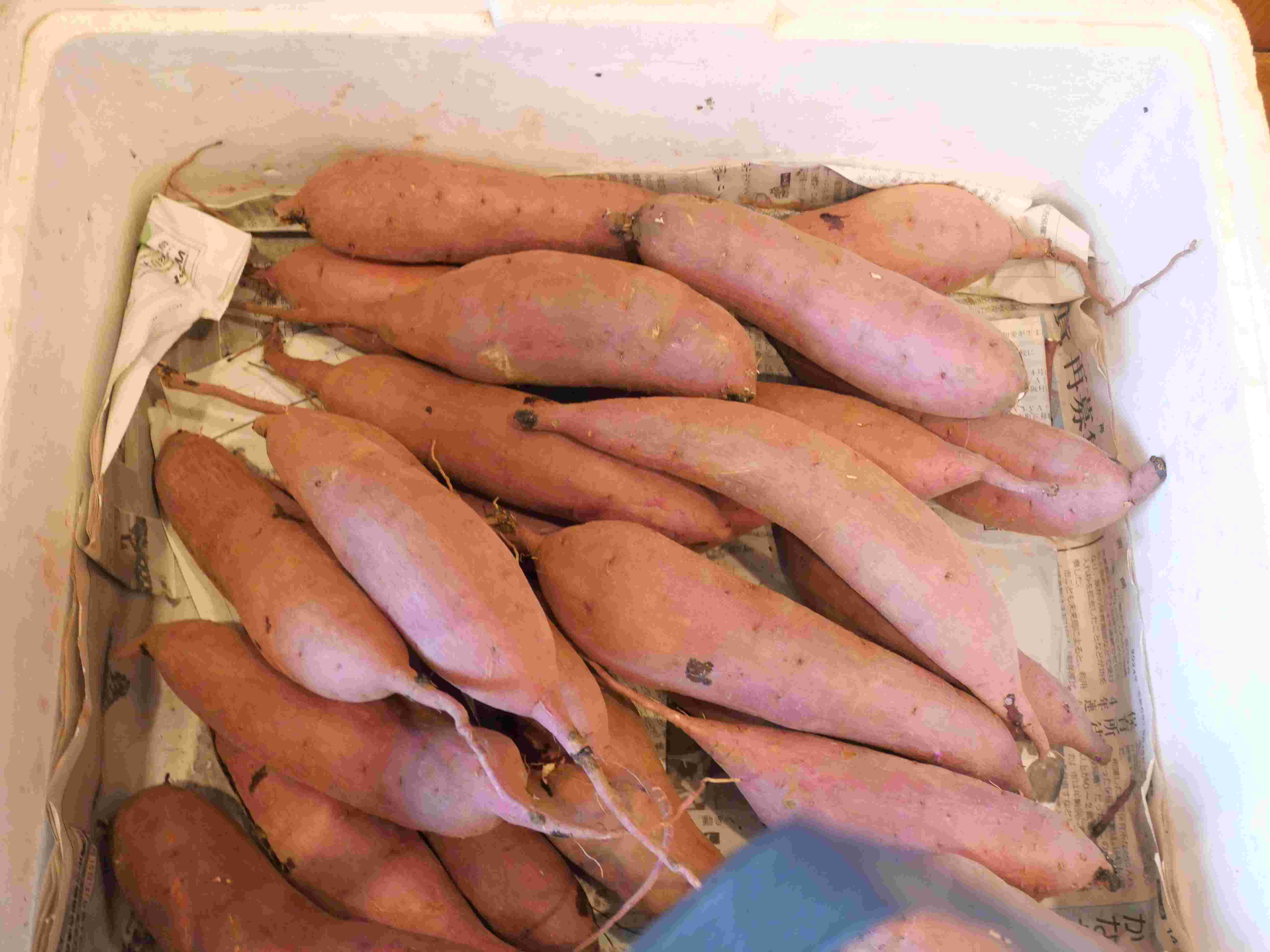 「犬用のクッキーをさつまいもで作ってます。B品のサツマイモ。焼き芋にしてペーストにしてクッキーに入れたりとか、人参をすりおろして犬用クッキーにして『地元産です』と売るやり方をとっている。うちで唯一作ってるもの。賞味期限のからみもあるし、あまり在庫を持ちたくないので動物病院でおろすだけにしている。この同じマンションに動物病院ができた。そこに置かせてもらっている。焼き芋を焼くとき換気のためにドアを開けているといい匂いが流れ、焼き芋の匂いに誘われて犬がどんどん入ってくるんですよ。飼い主さんは仕方がないと焼き芋買って帰ってくれる(笑)。