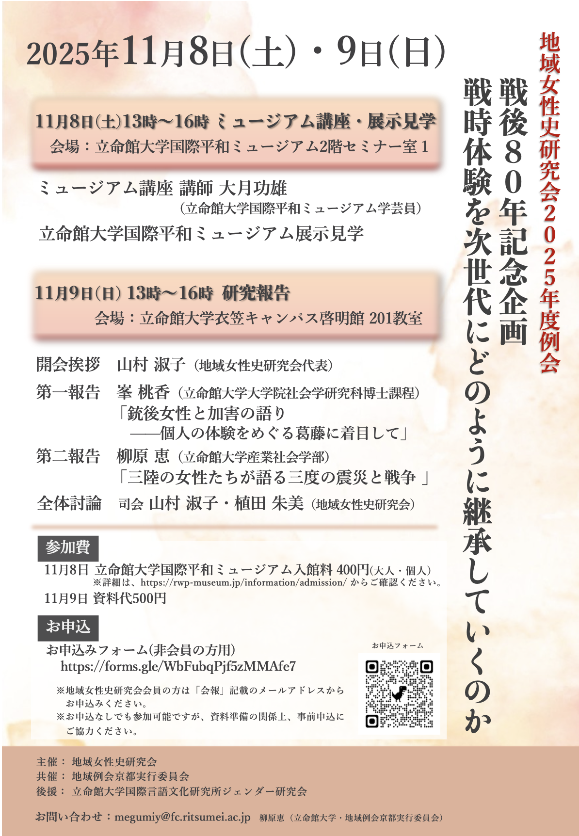 ※地域女性史研究会会員の方は「会報」記載のメールアドレスからお申込みください。