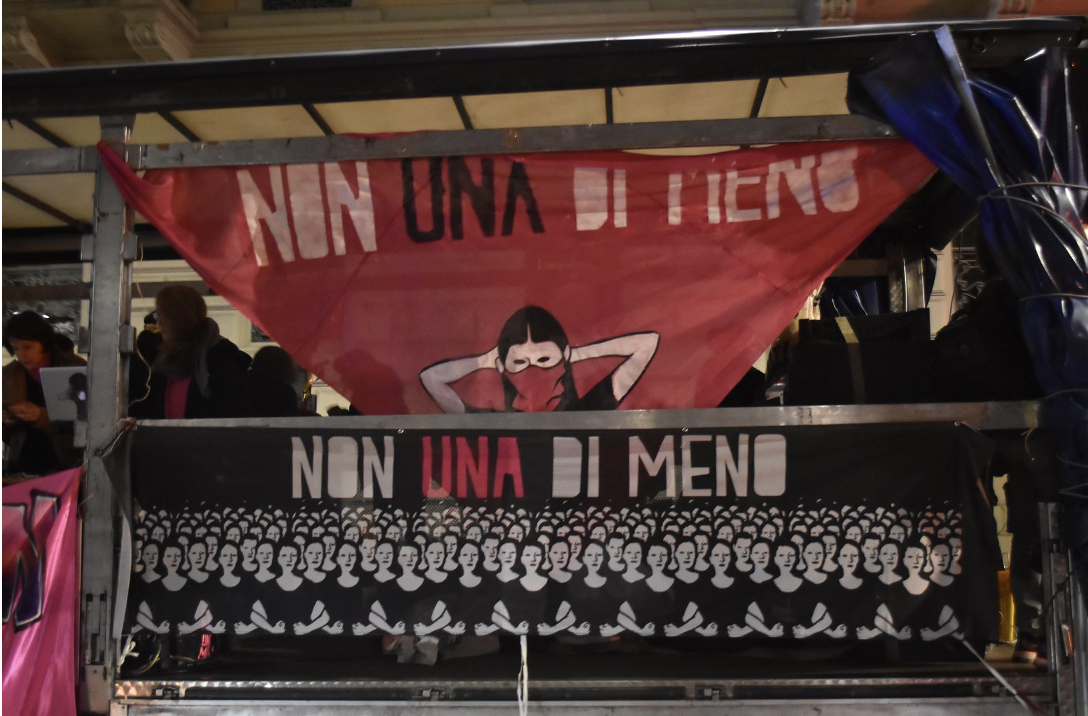 イタリアの運動がアルゼンチン発のNi Una Menos運動に触発されていることは、運動名称がそのままのイタリア語訳であることにも端的に示されている。Ni Una Menosは2015年に14歳の女性が交際相手により殺害され遺棄された事件をきっかけに開始され、同年6月にはブエノスアイレスだけでも20万以上の規模でのフェミサイドに抗議する街頭行動を起こした。翌2016年の16歳の女性の惨殺事件をきっかけに「女のストライキ」を国内外に呼びかけた。Ni Una Menos(一人の女性も殺させない)というスローガンは、フェミサイドと闘い、2011年に自身も36歳で殺害されたメキシコの女性詩人スサナ・チャベスの詩の一節に由来する。運動のもうひとつのスローガンはVivas Nos Queremos(「私たちは生きていたい」の意)である。この運動は暴力、搾取、収奪に対して生存を要求してきた中南米のフェミニズム運動の流れの中から登場した。