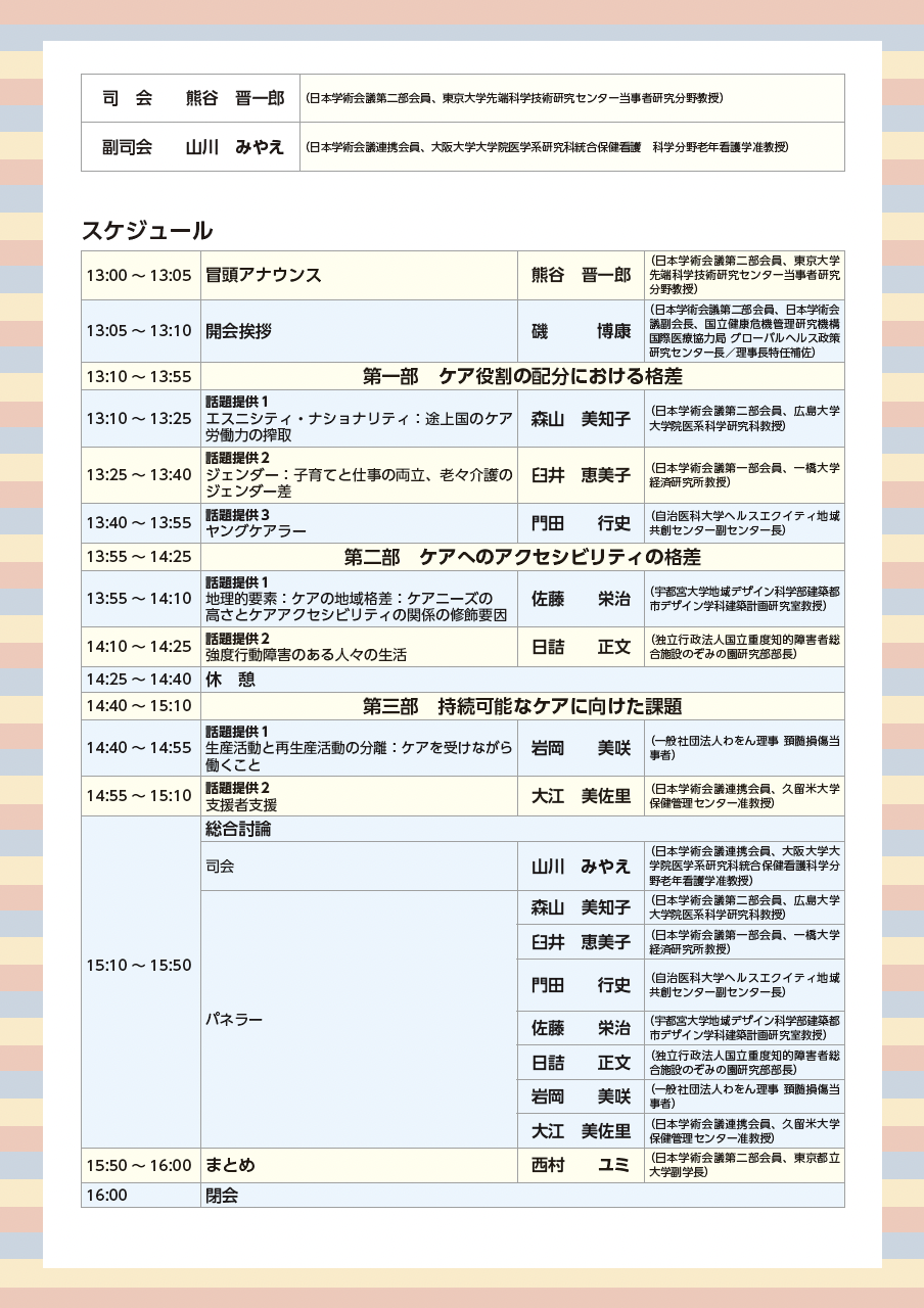学術フォーラム「ケアの多様性・包摂性・公平性・持続可能性」