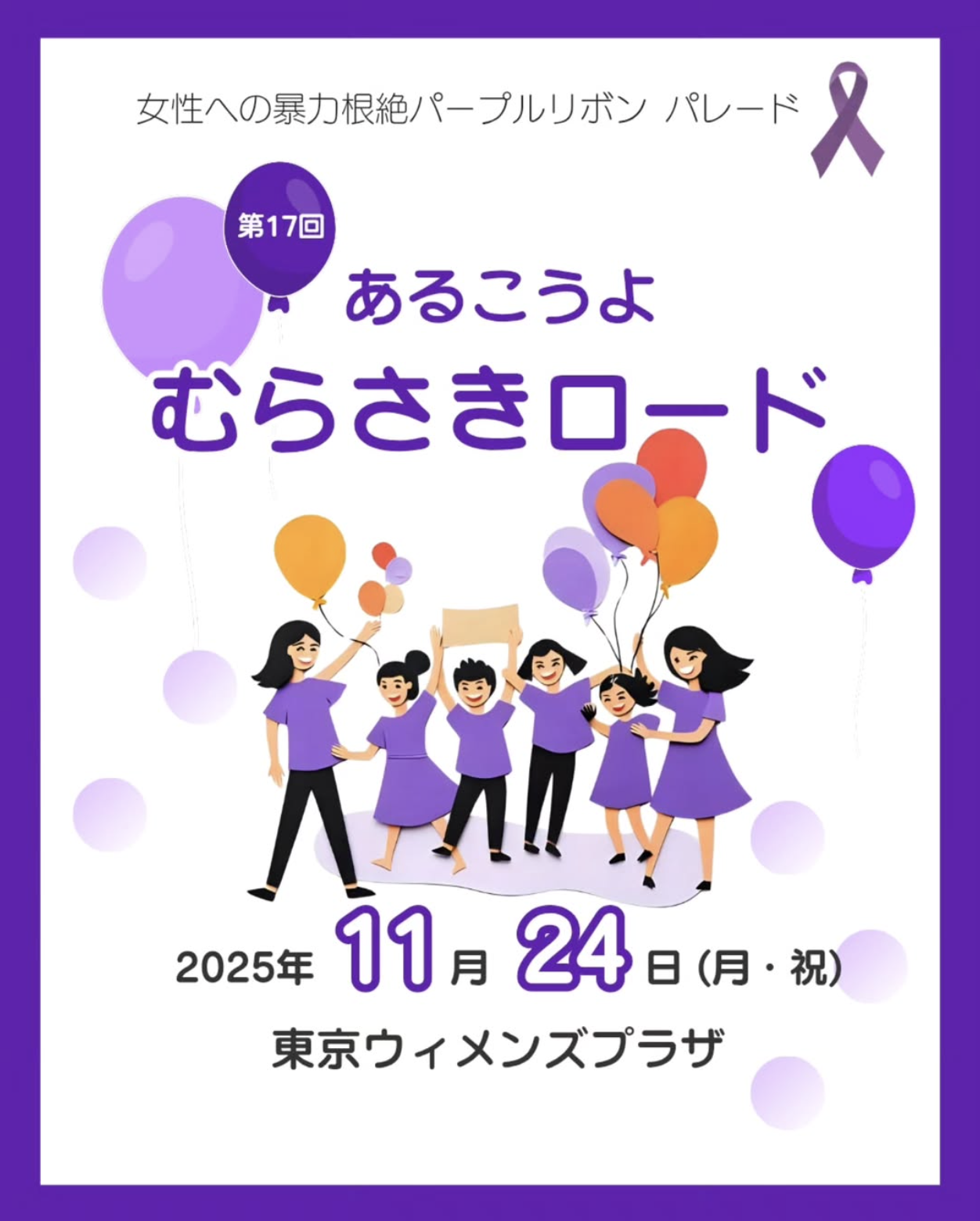 をスローガンに、午前中は東京ウィメンズ・プラザで集会後、午後に青山通りから表参道をパレードして歩きます。