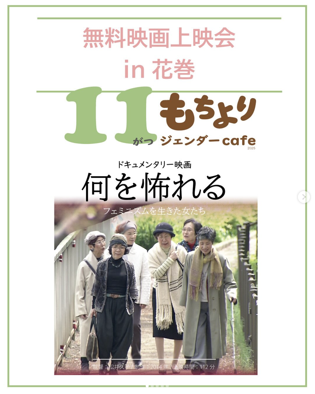 【活動報告🎥】岩手県花巻市で、映画「何を怖れる」フェミニズムを生きた女性たち を、いわてのジェンダーと多様性を考える県民有志、MHDSG(元花巻市男女共同参画推進員グループ)が共催で上映しました。