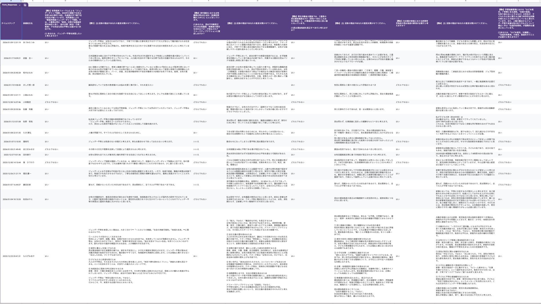 2026年も立候補者へのジェンダー政策アンケート!!