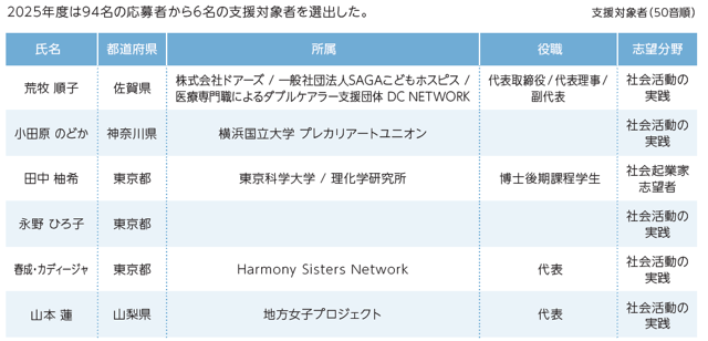 <2025年度支援対象者(授賞者)>> 詳細は以下サイトをご覧ください。活動報告書もダウンロードできます。(シェア大歓迎!)
