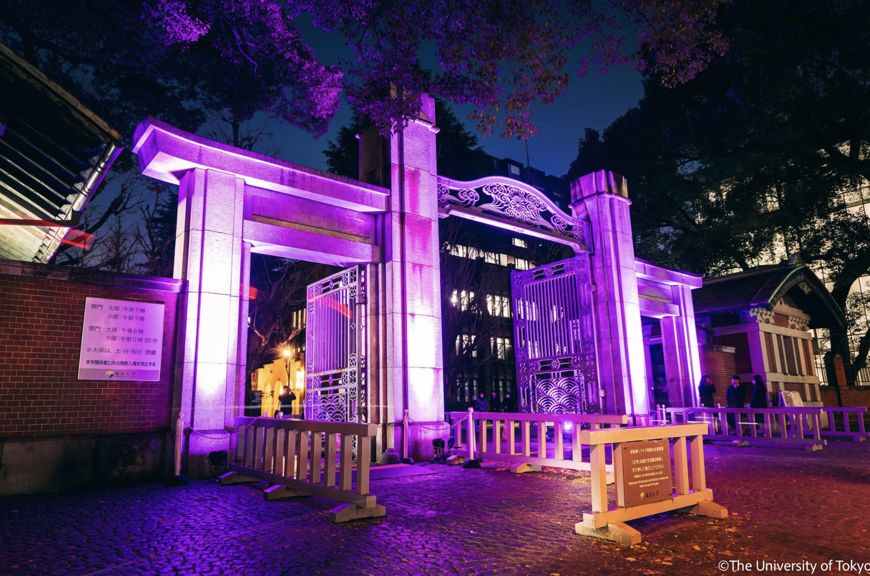 12月17日~23日まで東大本郷正門においてパープル・ライトアップを実施