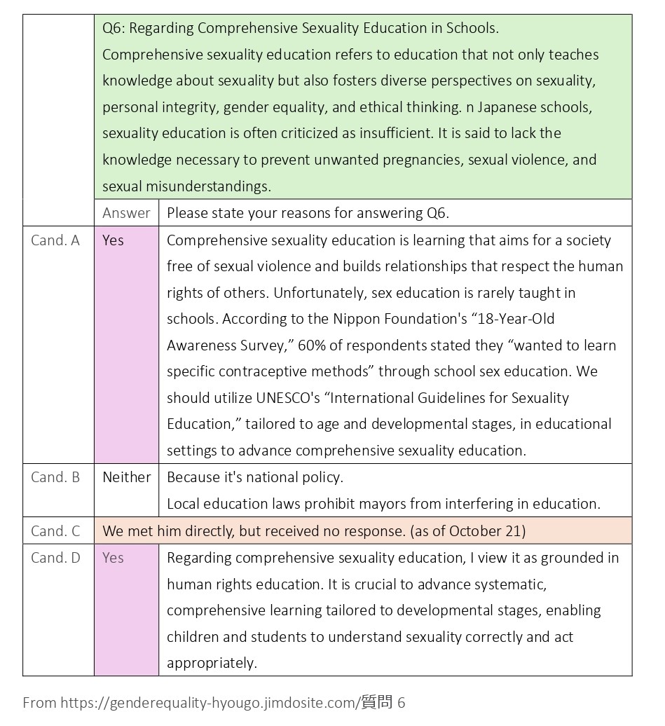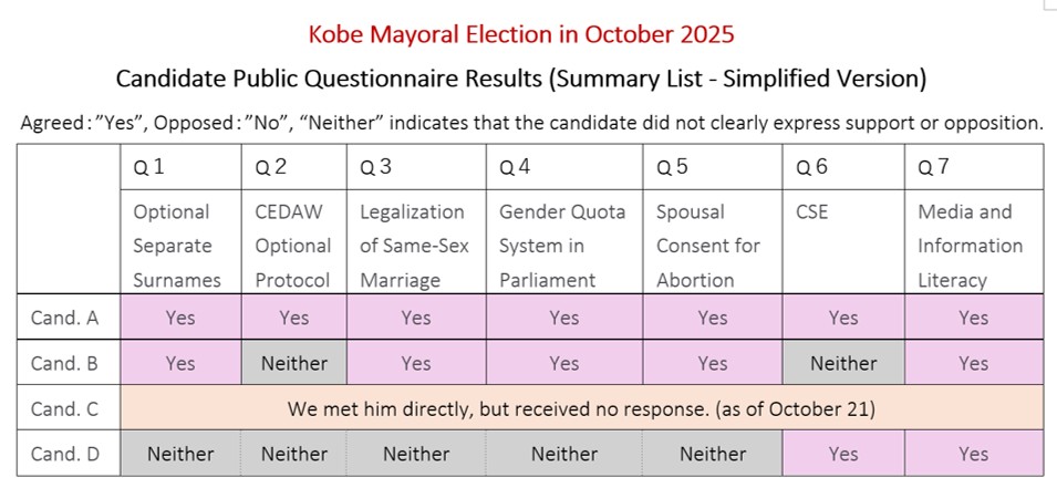 The "Gender Policy Questionnaire" for candidates, conducted nationwide in conjunction with the 2025 House of Councillors election. This network is now expanding to local elections nationwide!! Introducing teams planning to conduct the "Gender Policy Questionnaire" after October 2025.