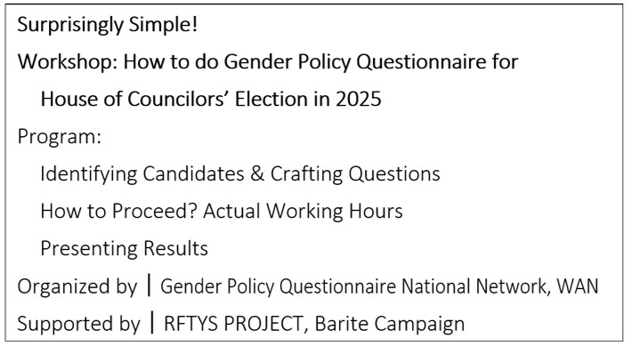 A page packed with tips on how to conduct a "Gender Policy Survey" https://wan.or.jp/article/show/11906
