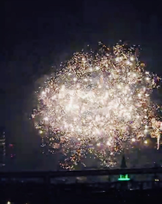 ベランダから花火を見ると目の前の高さで花火が炸裂します。