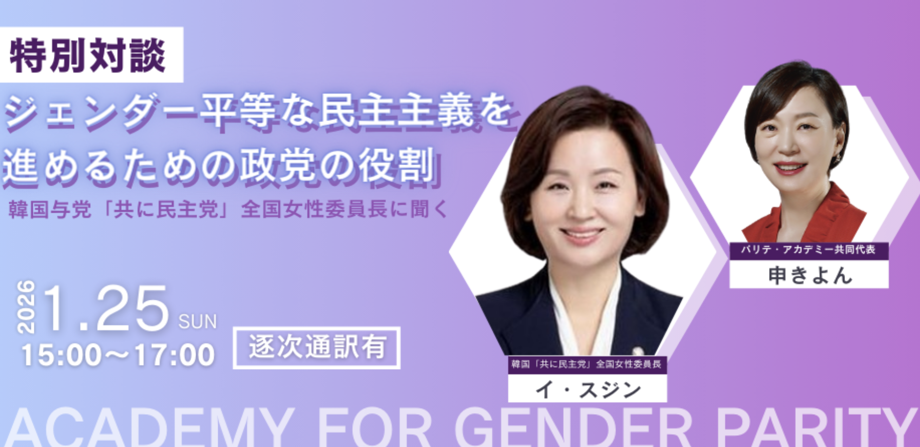 韓国の経験から日本の政治とジェンダー平等の課題を捉え直し、政党改革、ジェンダー平等、そして民主主義の未来をともに考える機会としたいと思います。関心をお持ちの皆さまのご参加をお待ちしています。