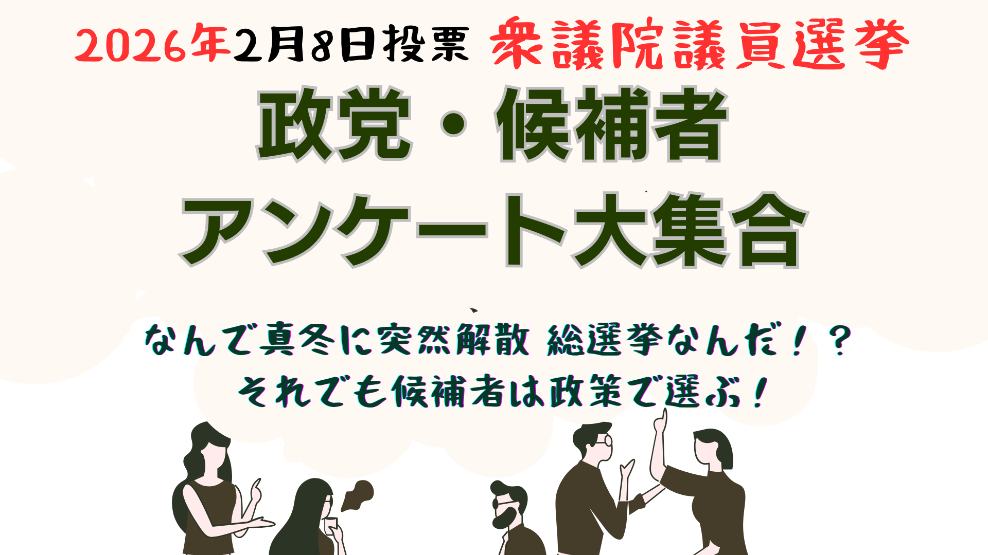 ◯『2026衆院選 政党・候補者アンケート大集合 ☃️なんで真冬に突然解散 総選挙なんだ!? それでも候補者は政策で選ぶ!🗾』はhttps://wan.or.jp/article/show/12297