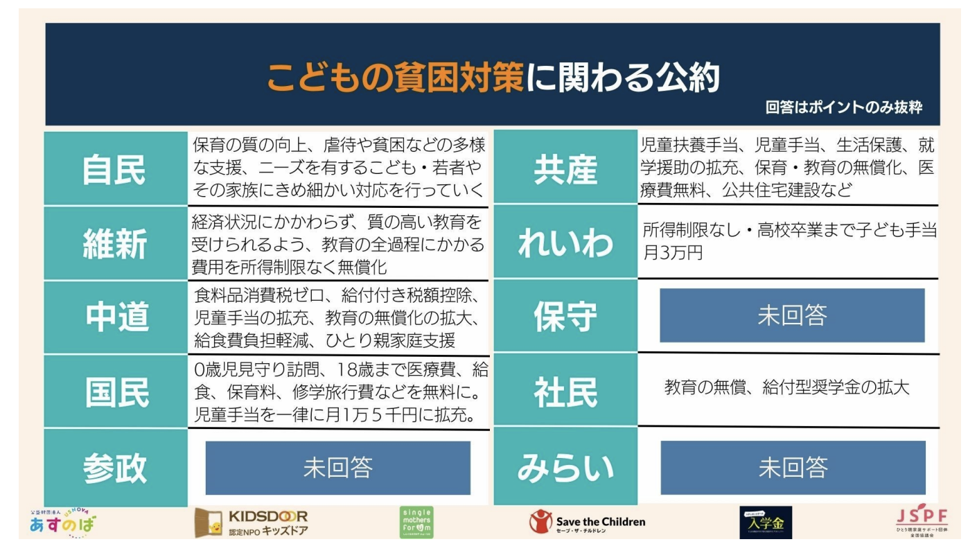 「こどもの貧困施策に関する政党アンケート調査」を6団体が実施
