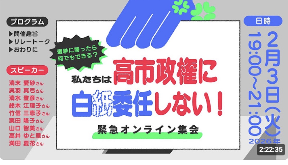 さまざまな現場で起きている問題を直視しつつ、何が問われているのかを直言する緊急集会の内容が2月8日まで事後配信されています。