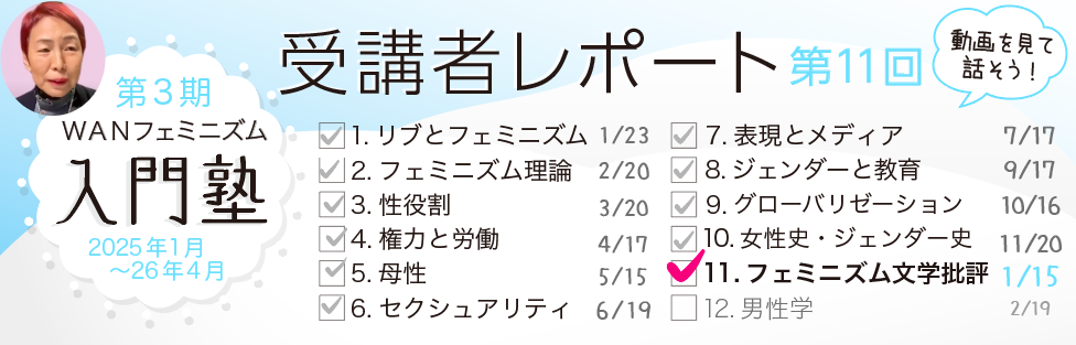 WANフェミニズム入門塾の第11回目講座が1月15日(木)に開催されました。