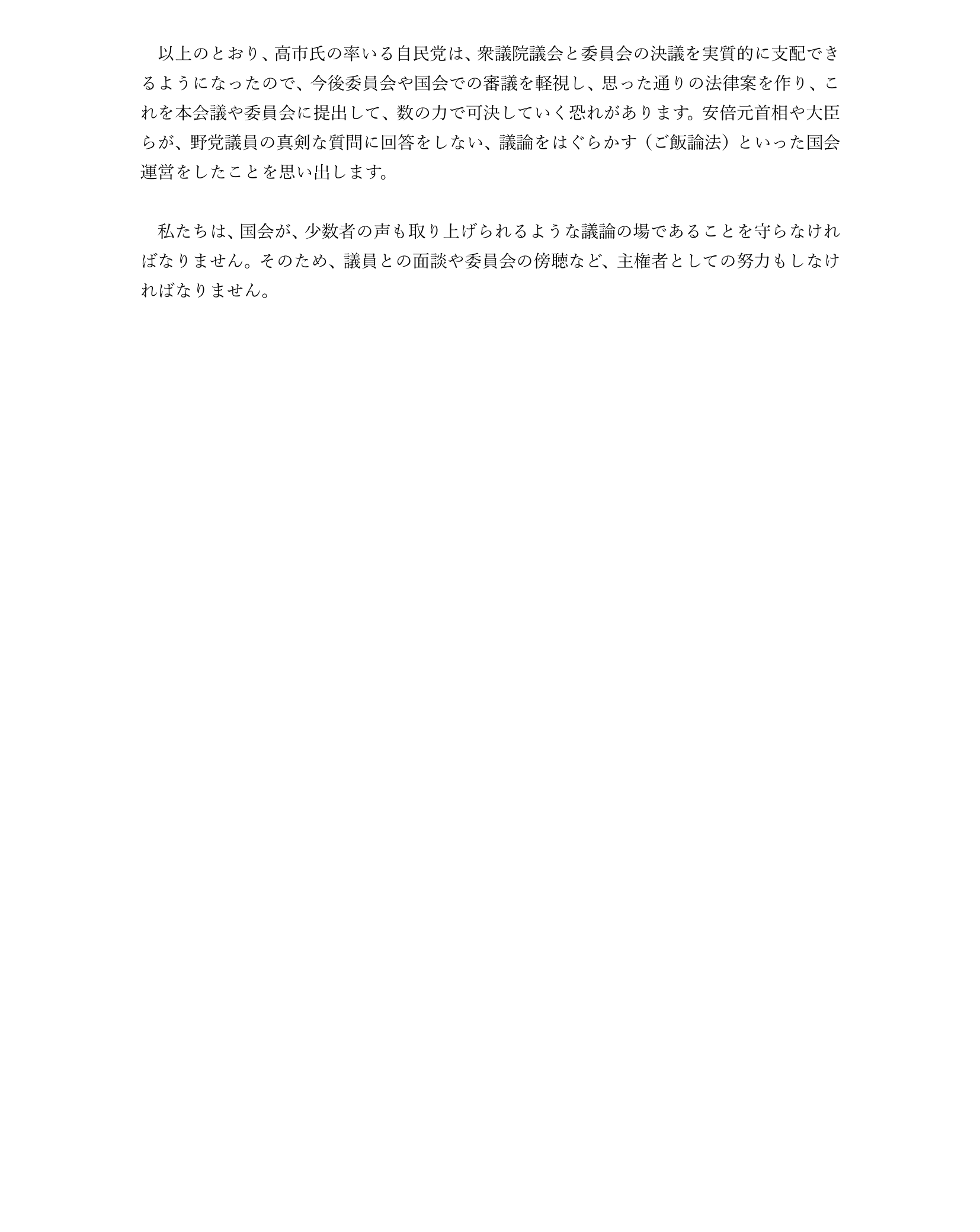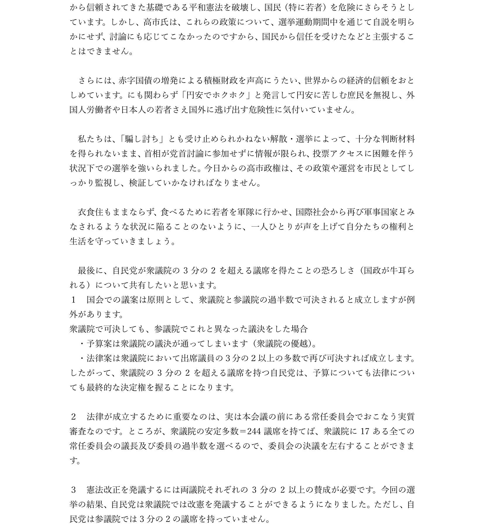 2026年2月9日、平和を求め軍拡を許さない女たちの会からの声明です