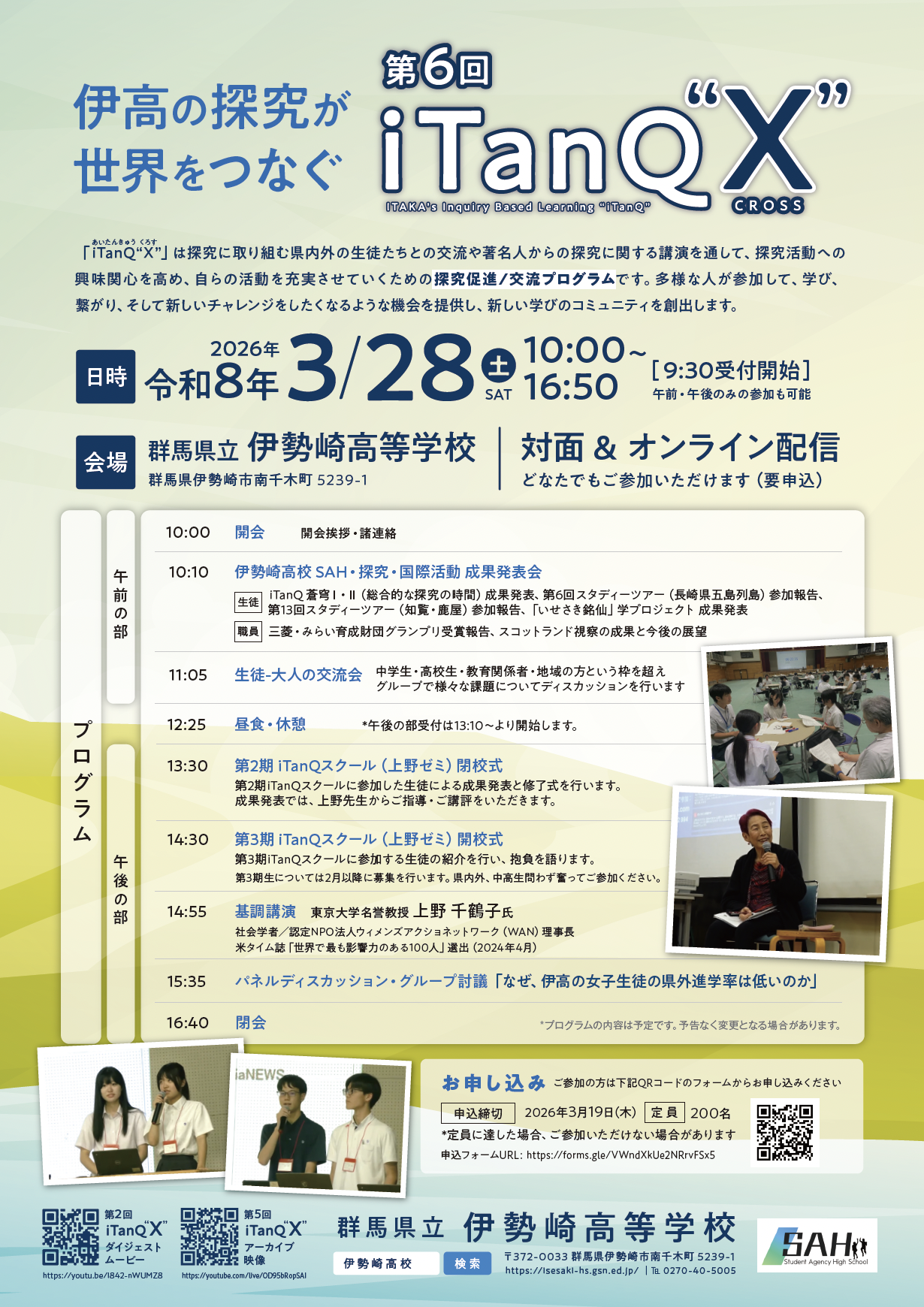 詳細は上記のフライヤーのPDF、または伊勢崎高校HPをご覧ください。