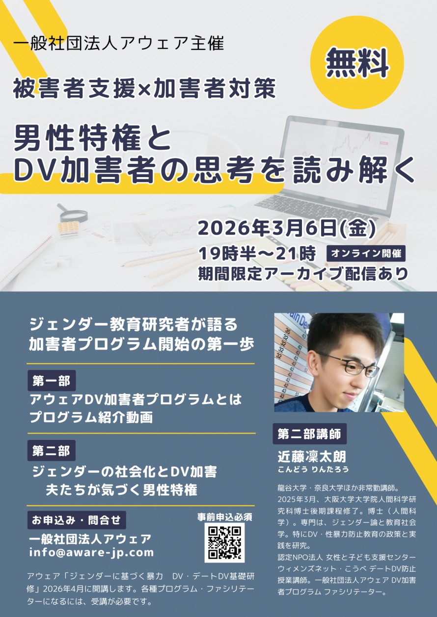 一般社団法人アウェアは、DV加害者プログラムを2002年から23年間、被害者とそのこどもたちを支援する目的で実施してきました。