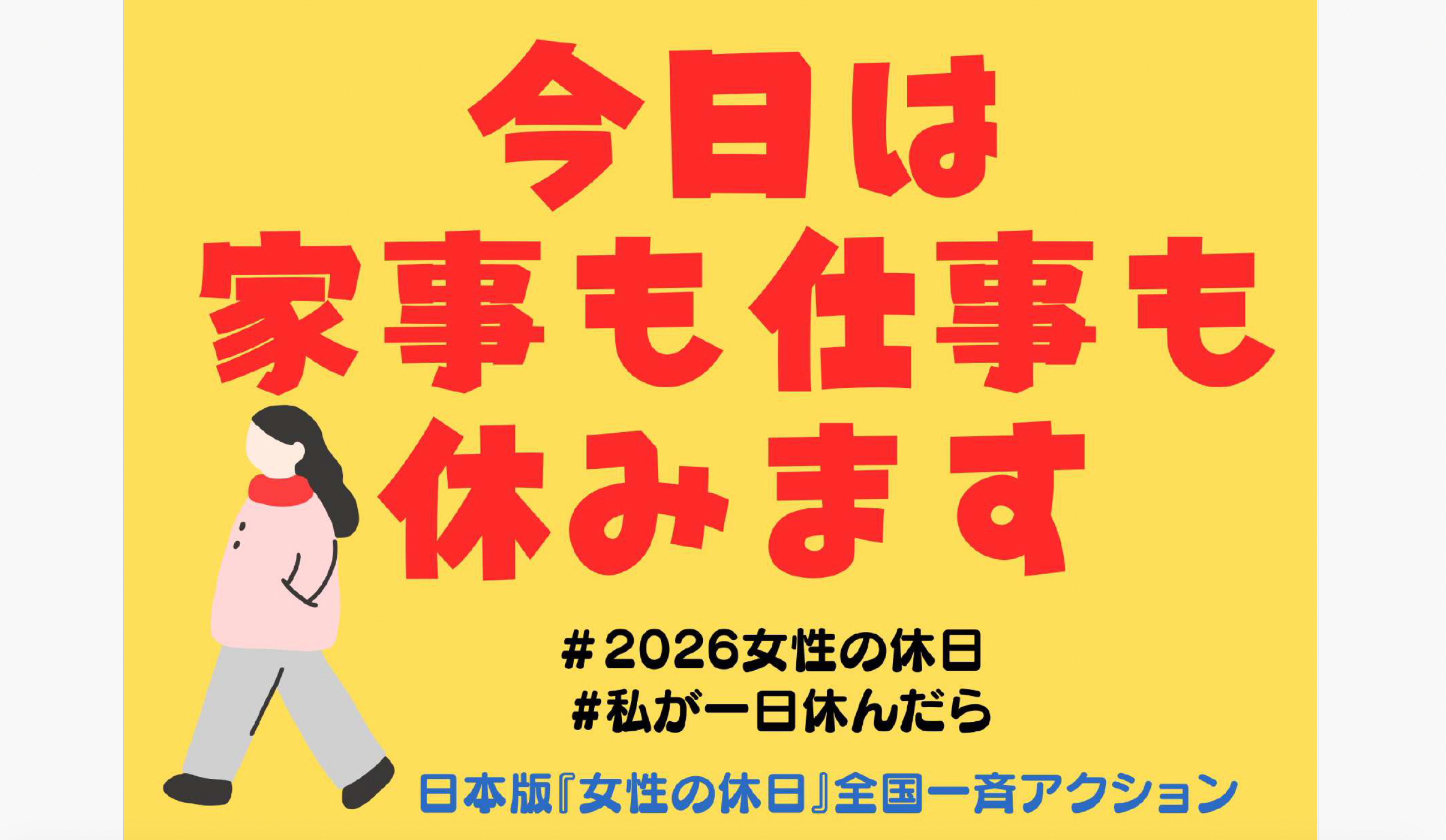 ※本アクションは「女性の休日プロジェクト」と連帯して実施します。こちらから全国でのアクション計画を確認できます。https://wdayoff-project.studio.site/