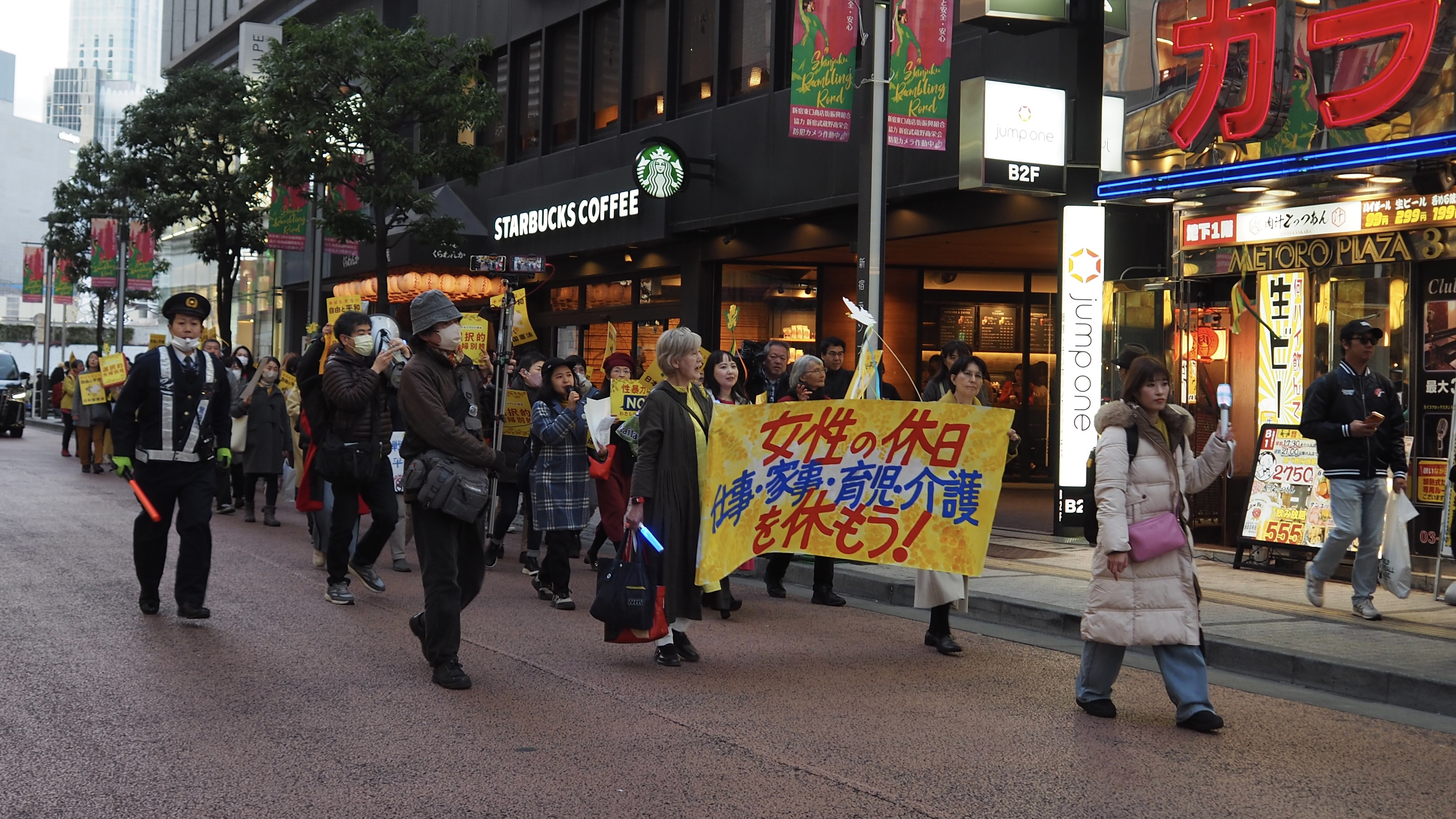 12月末には、3月6日に新宿で街頭アクションを実施することを決め、市民やメディアへの周知と、国会議員に対して、日本における女性差別やジェンダー平等の遅れ、そして女性の権利拡充にいっそう関心をもってもらうために、日本版「女性の休日」プレ企画として、2月5日に院内集会を実施することを決定した。