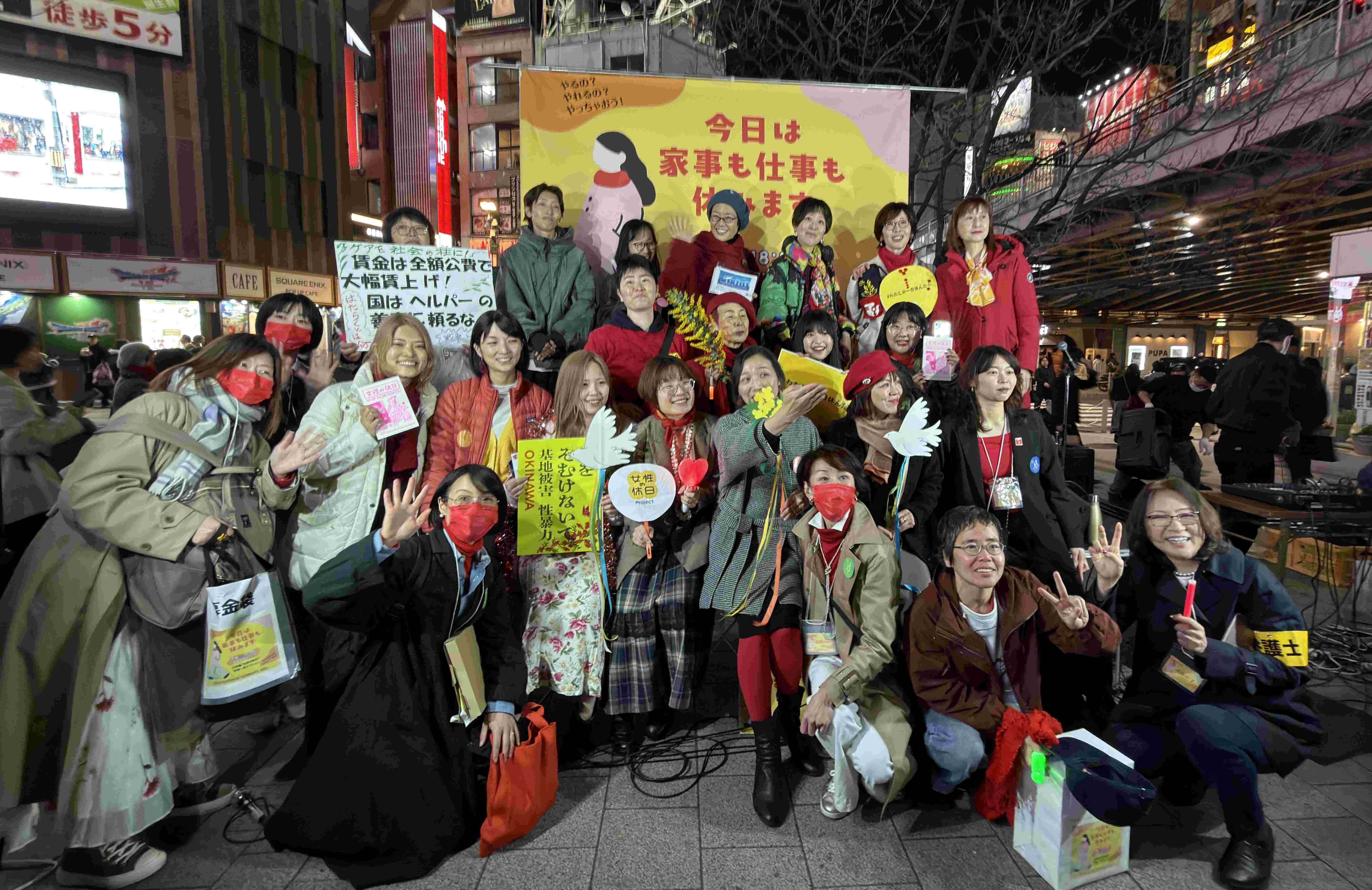 日本版「女性の休日」アクション登壇者とスタッフの記念撮影(3月6日)