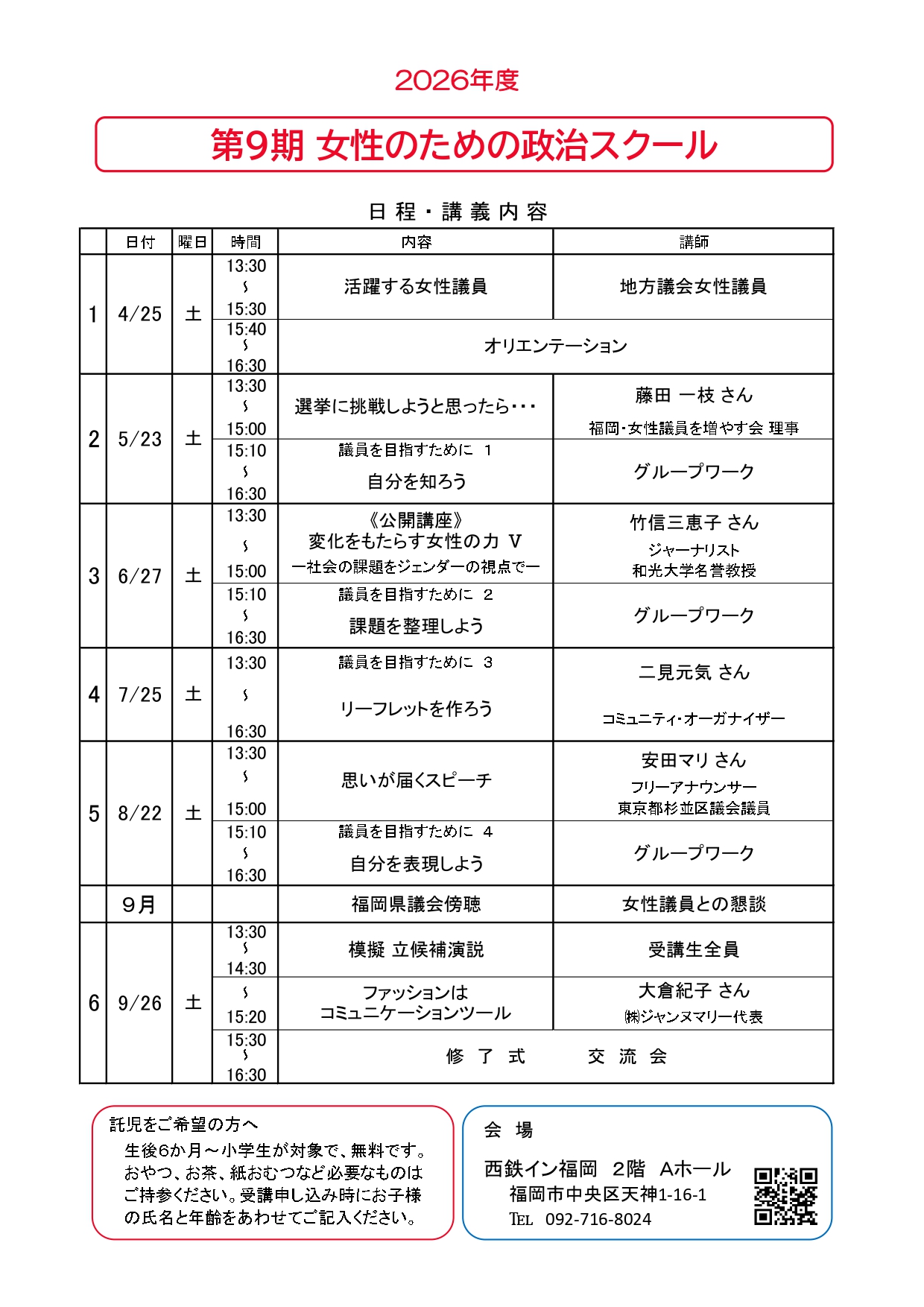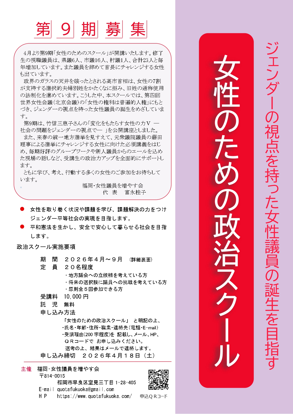 今期は、来年の統一自治体選挙に向けて、更なる女性議員増を目指し受講生を募集しています。