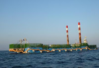 The gravels were thrown into the sea inside the area supposedly lined with the anti-pollution coverings, but not only did they fail to reach the bottom of the sea, they were full of holes. Fortunately the load capacity of gravel that can be carried by these working ships was limited, and the total amount of gravel thrown into the sea was considerably less for the number of ships that were there.