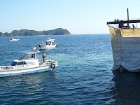 The duty of Japan Coast Guard is to guard and protect ships and people on the sea from danger, but it seemed to me that their main concern this day was to protect the safety of Chuden ships as the working ships continued to throw-in gravel into the sea.