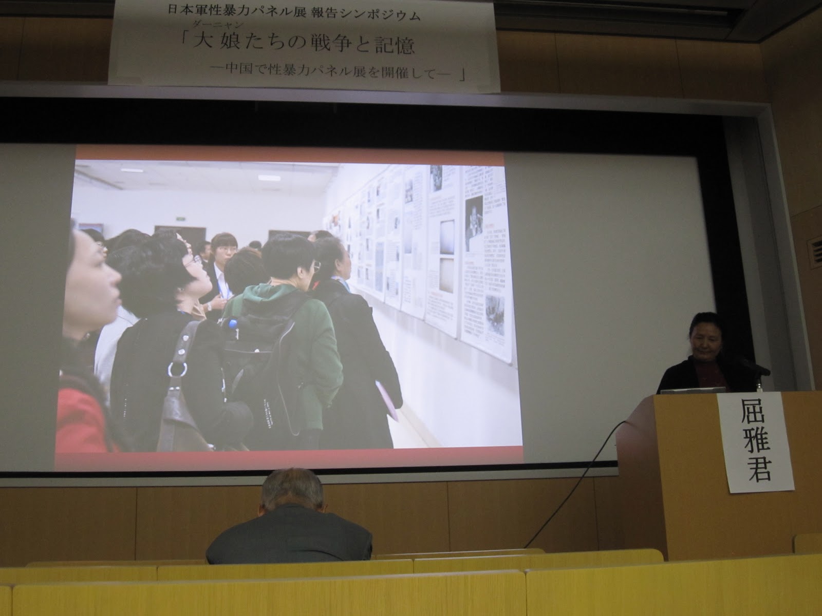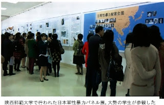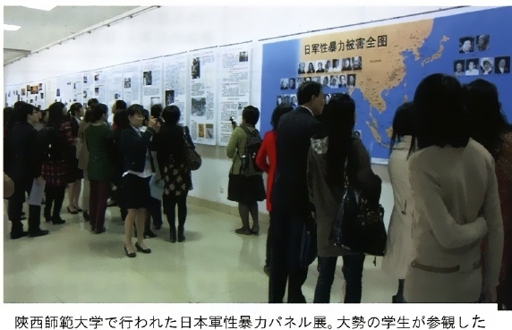 In addition, the Japanese group known as the Japanese Army’s Sexual Violence Panel Exhibition committee had organized a series of panel exhibitions in Japan to reveal the facts of wartime sexual violence and their own activities. Later they brought the exhibit to China and Prof. Qu and her colleagues attended the panel exhibition held in Shanxi in 2010 thanks to collaboration between the Japanese committee and local Chinese women. She instantly decided to invite the the exhibition to be held at her university, and in the following year it was actually held at the university attached Women Culture Museum in Shaanxi.