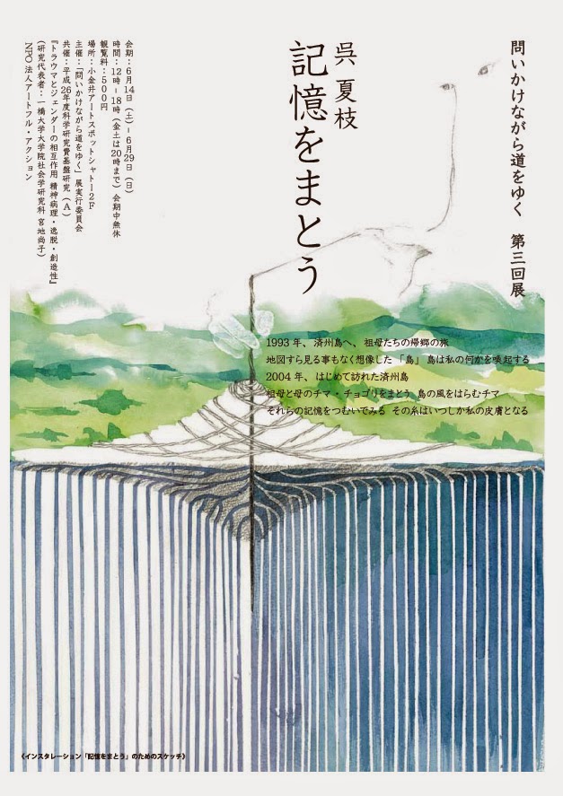 The installations including the costumes shown in the leaflet of the exhibition below will be exhibited. A workshop to “unravel and undo the knots” will also be held on Sunday, June 22, in the same venue. It is organized as part of a series of workshops initiated in Western Japan as Breaker Project activities, suggesting OH’s own way to retrace memories in pursuit of untold memories or memories beyond verbal description.