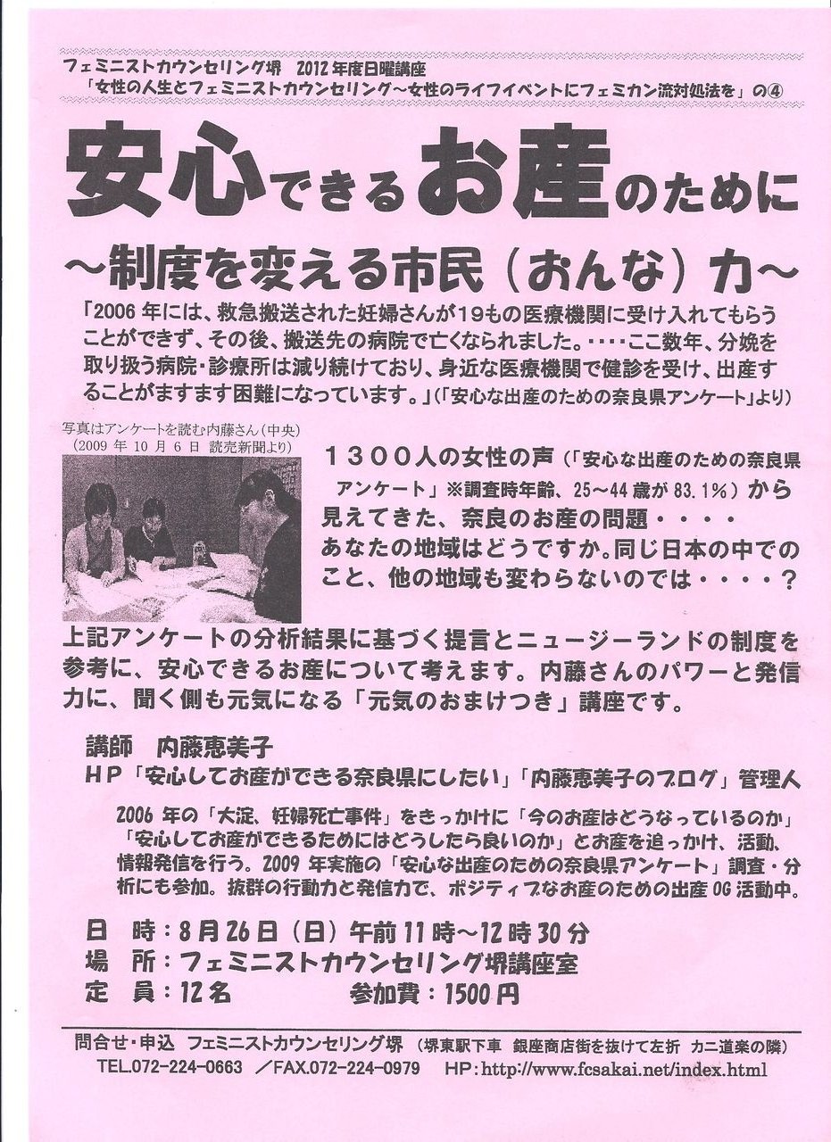 FC堺日曜講座④「安心できるお産のために~制度を変える市民(おんな)力」