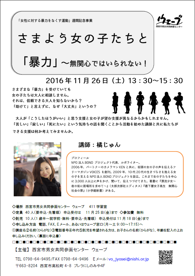 さまよう女の子たちと「暴力」~無関心ではいられない! 「女性に対する暴力をなくす運動」週間記念事業