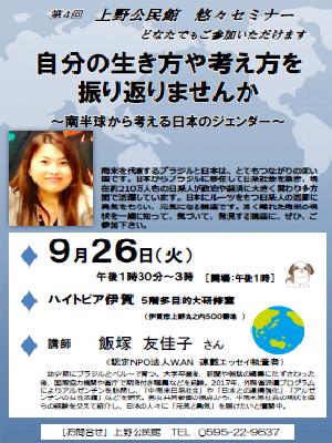 第4回上野公民館悠々セミナー(自分の生き方や考え方を振り返りませんか~南半球から考える日本のジェンダー~)