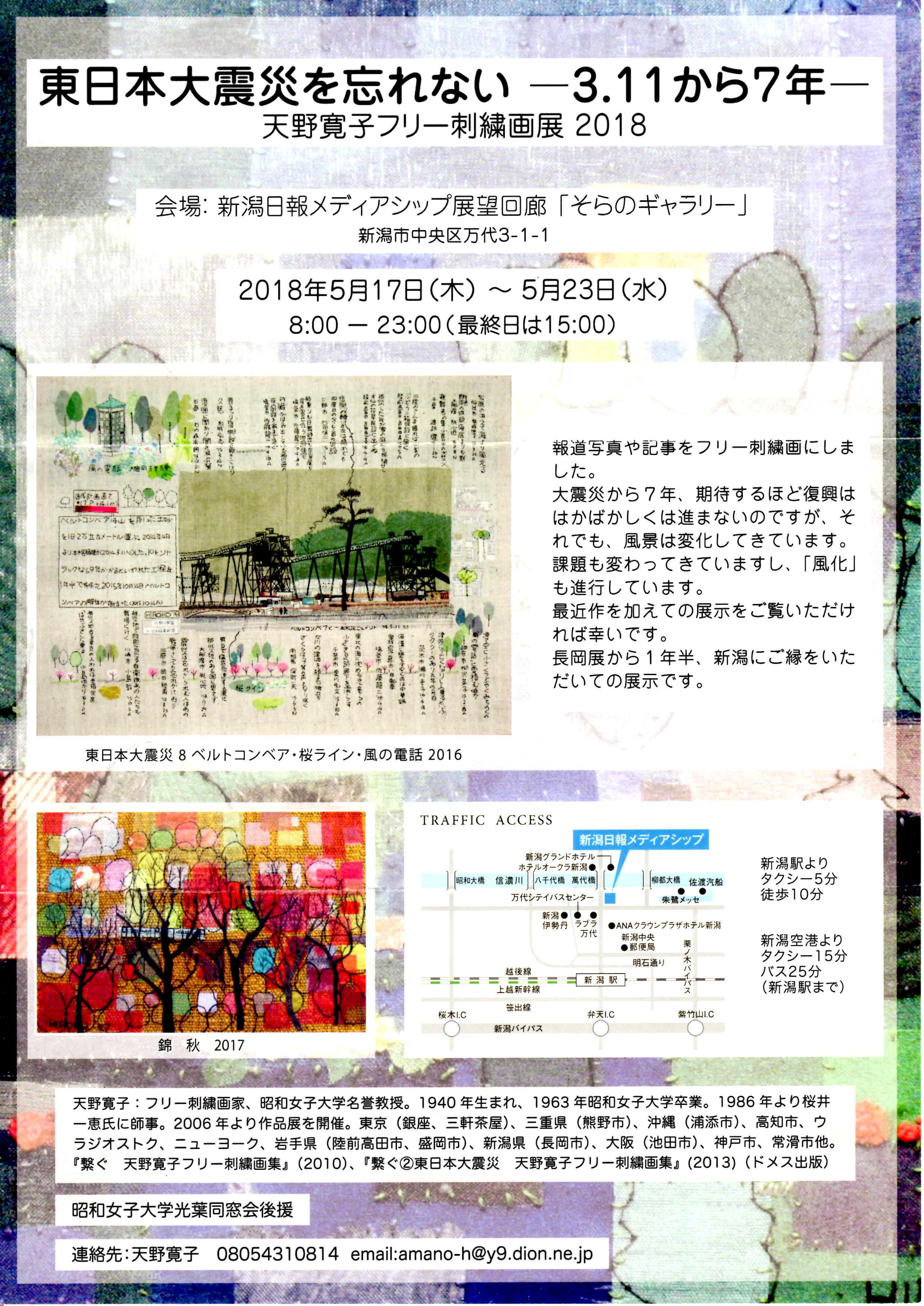 東日本大震災を忘れないー3.11から7年ー天野寛子フリー刺繍画展2018