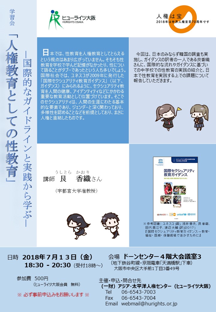 | 連絡先: | (一財)アジア・太平洋人権情報センター(ヒューライツ大阪)Tel 06-6543-7003 Fax 06-6543-7004 Email webmail[a]hurights.or.jp |