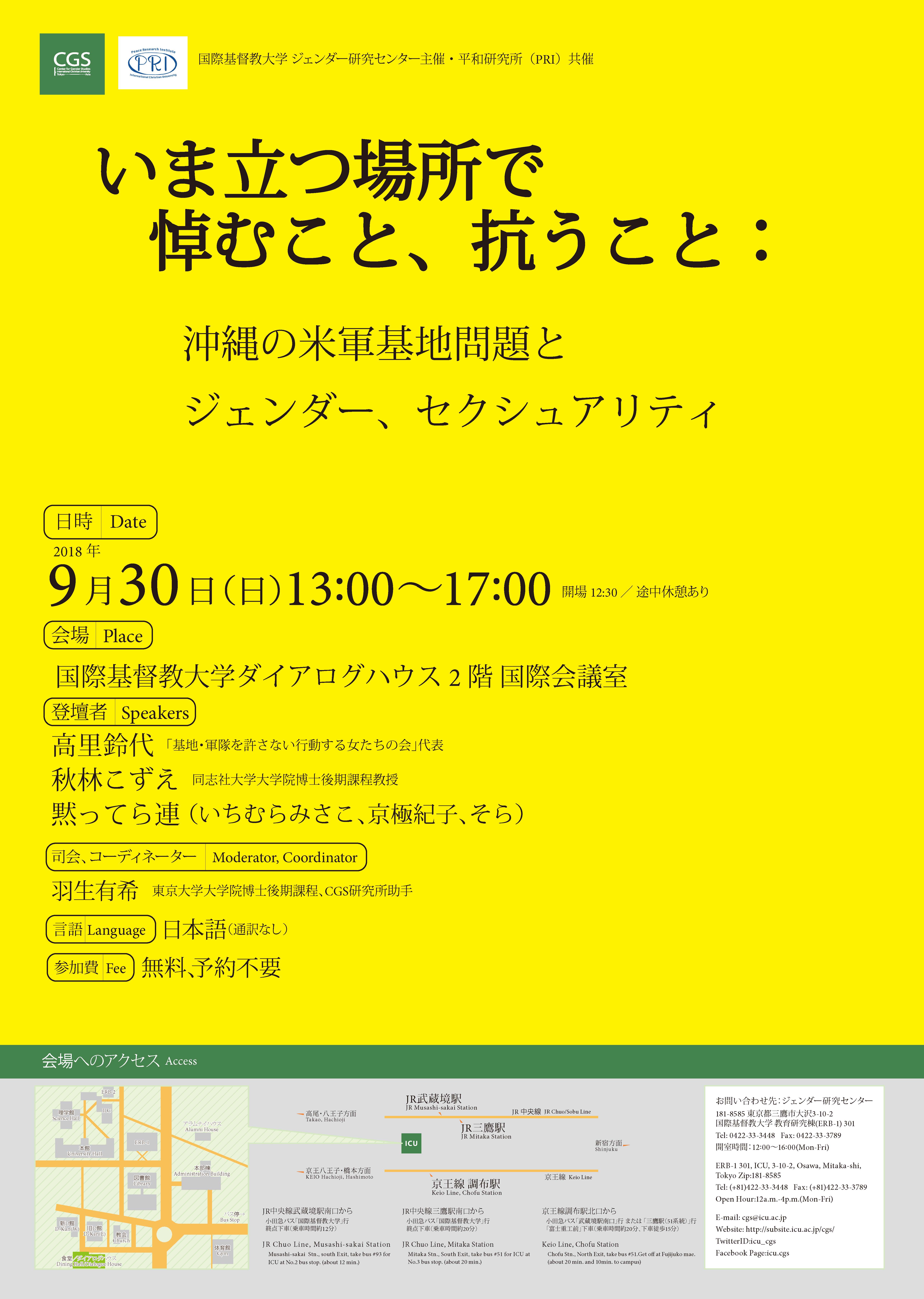 ICUジェンダー研究センター主催 【いま立つ場所で悼むこと、抗うこと:沖縄の米軍基地問題とジェンダー、セクシュアリティ】