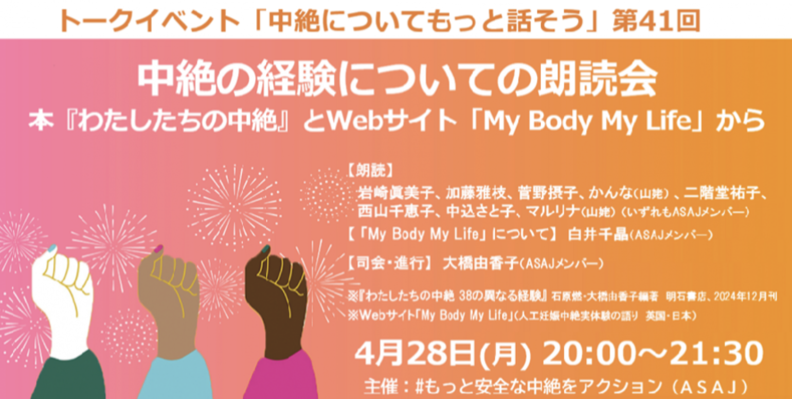 中絶についてもっと話そう!第41回 中絶の経験についての朗読会——本『わたしたちの中絶』とWebサイト『My Body My Life』から」